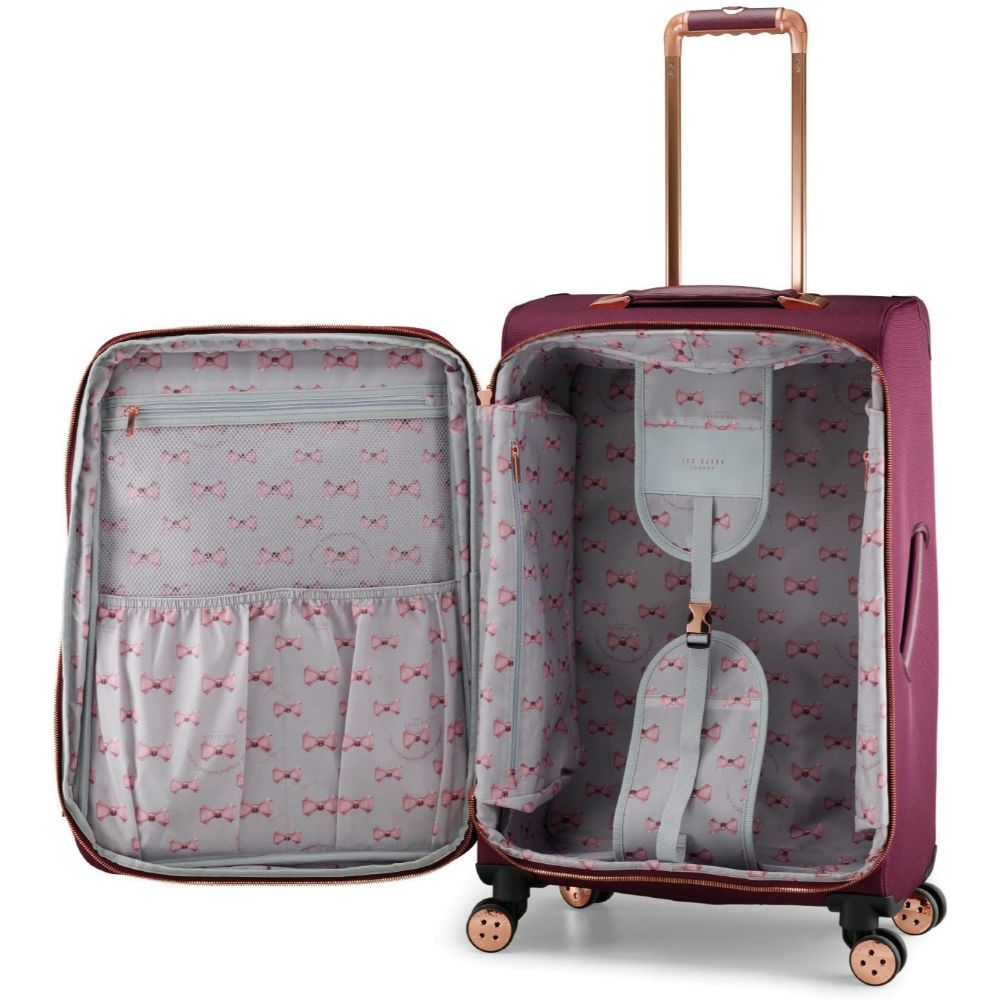 نقاط ربط ذات علامة تجارية وأغطية محور تيد بيكر بنمط الزر مع عجلات متدحرجة مزدوجة ناعمة للغاية. يتضمن ألباني أيضًا الشعار الجديد المنقوش بالذهب الوردي المبطن حتى يعرف الجميع أنك تحمل أحد إبداعات Teds.