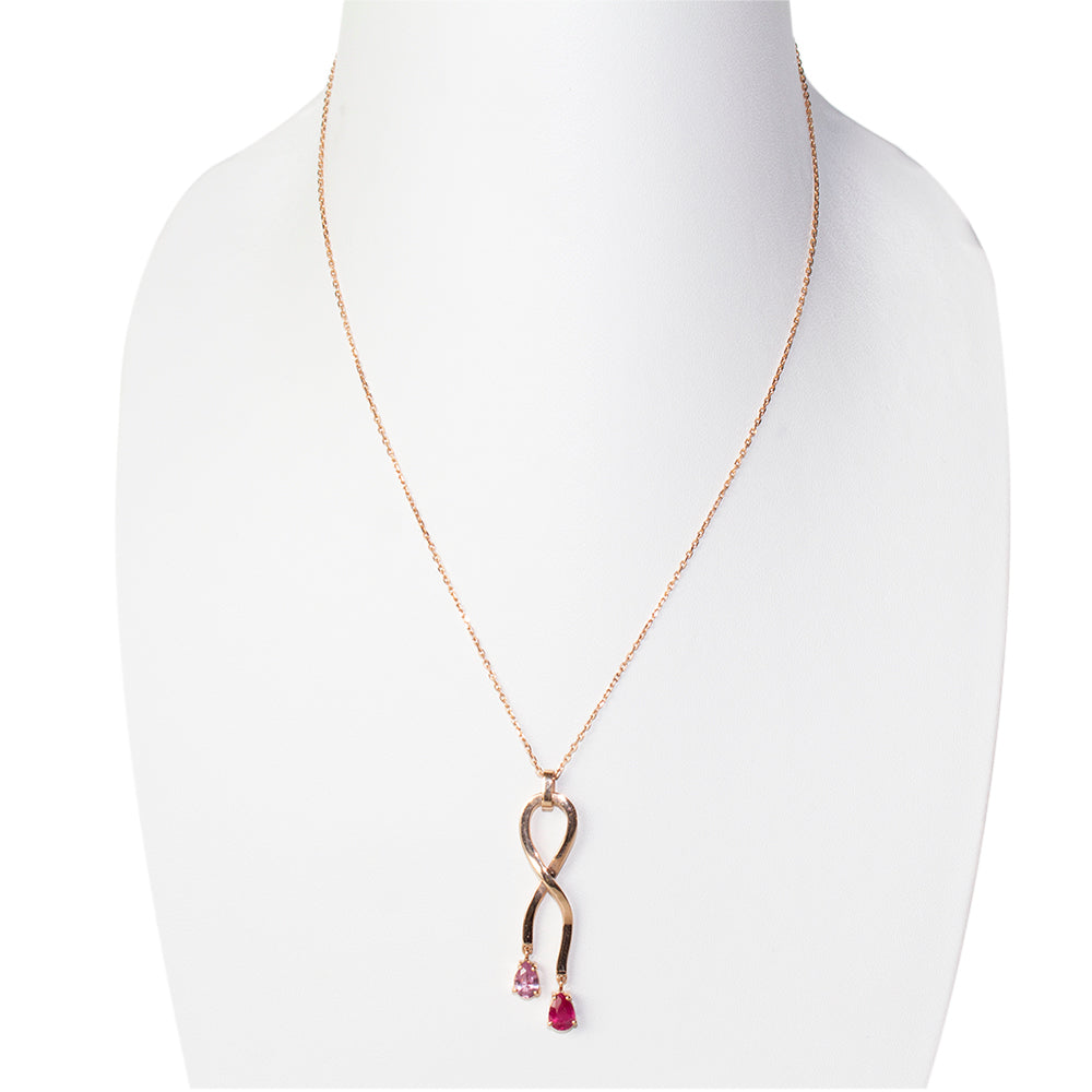 عقد تيرويهان من الذهب الوردي عيار 14 وزن 4.70غ مع 1 حجر كريم 0.60 قيراط لون اس اتش مع 1 حجر كريم 0.60 لون ار بي