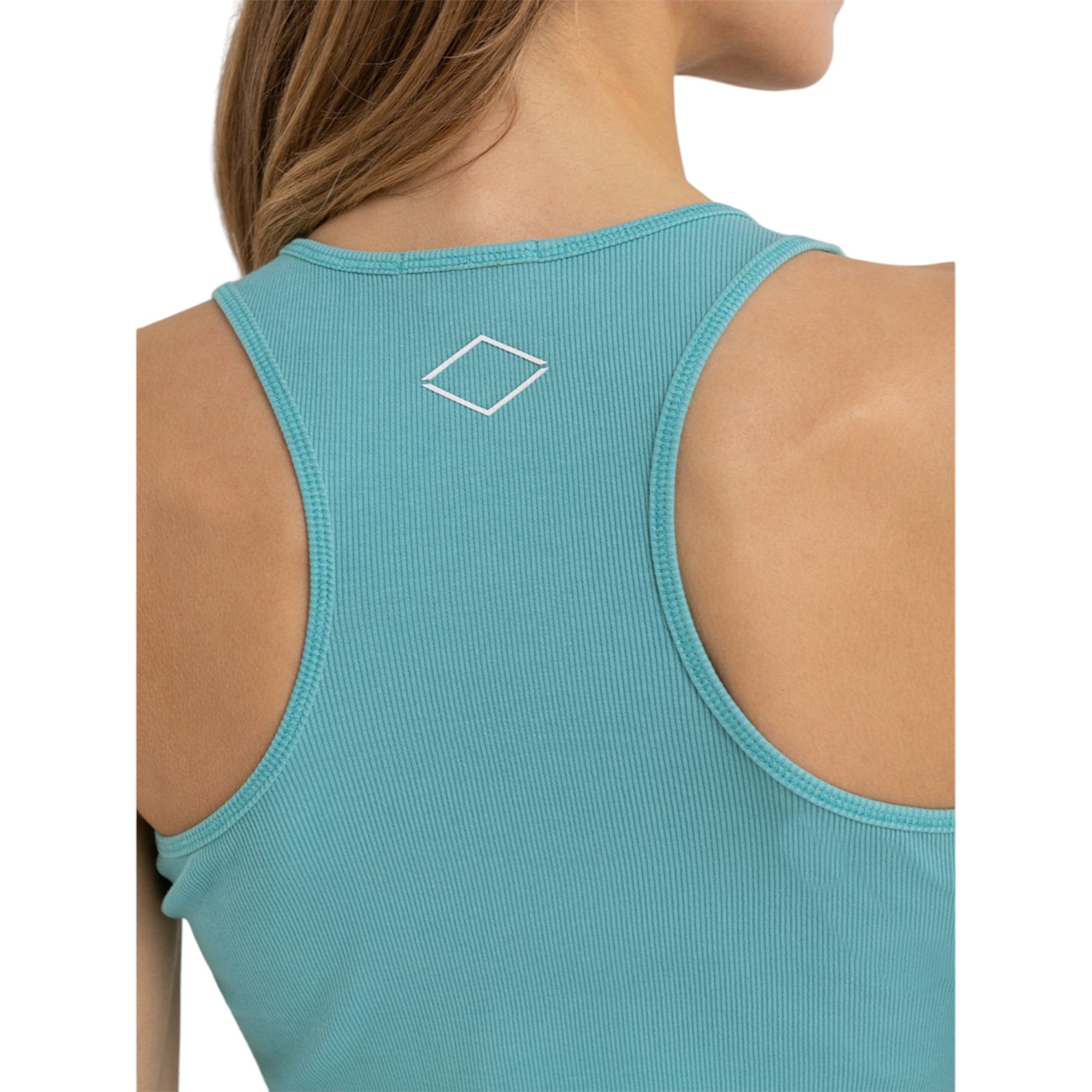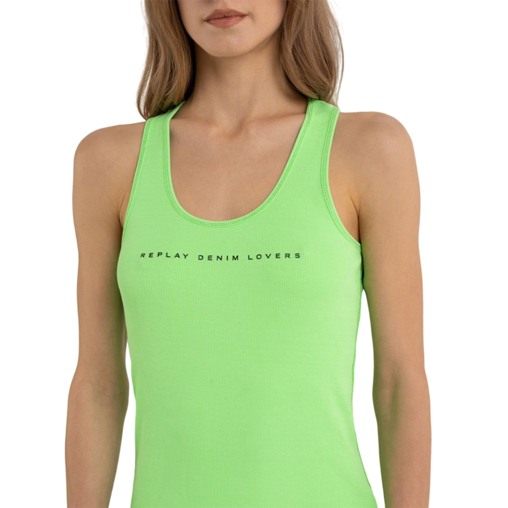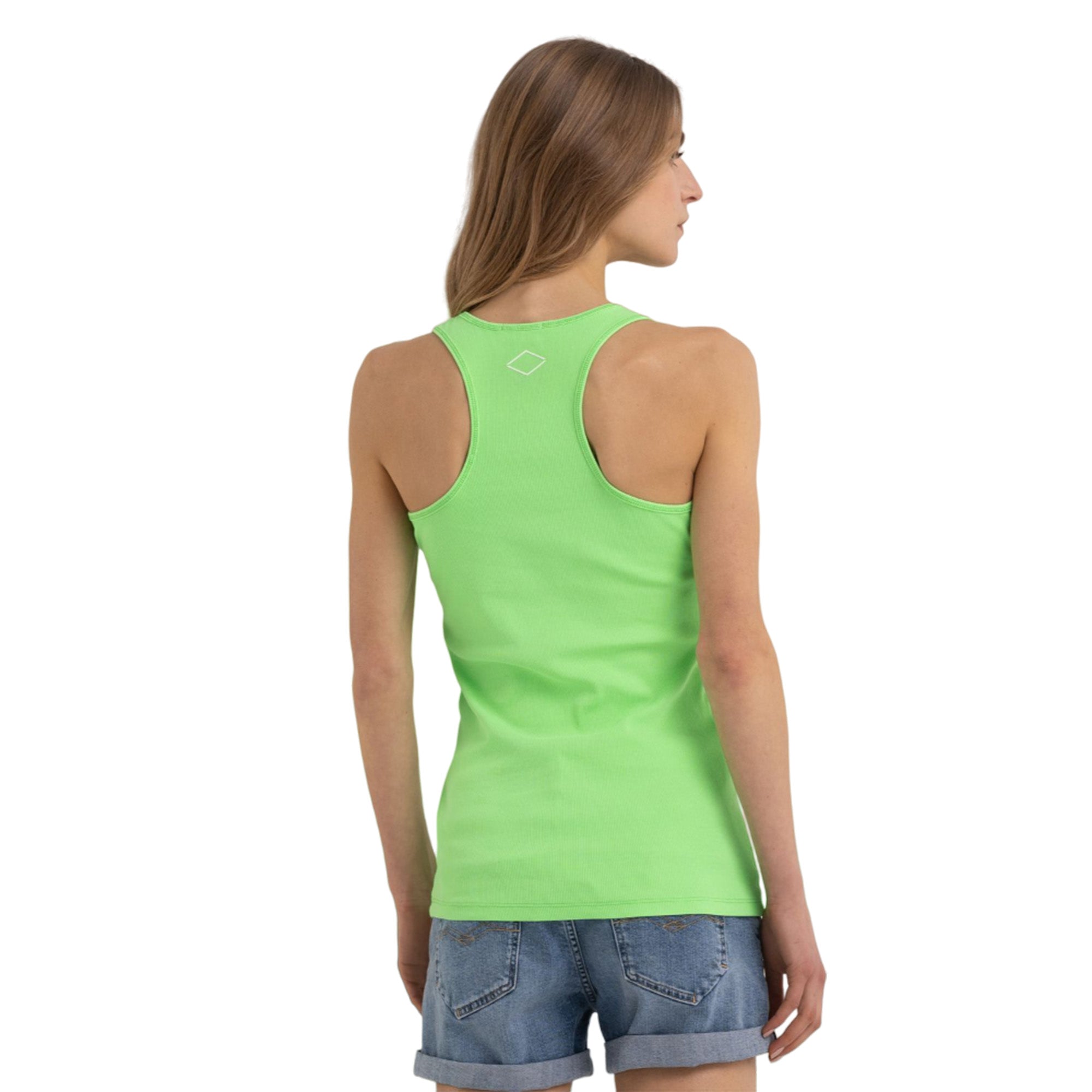 Crewneck top made of ribbed stretch cotton. The racerback garment features a tight fit. The item is enhanced by the customized print at the front.