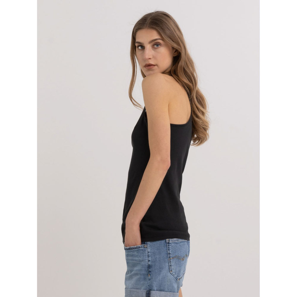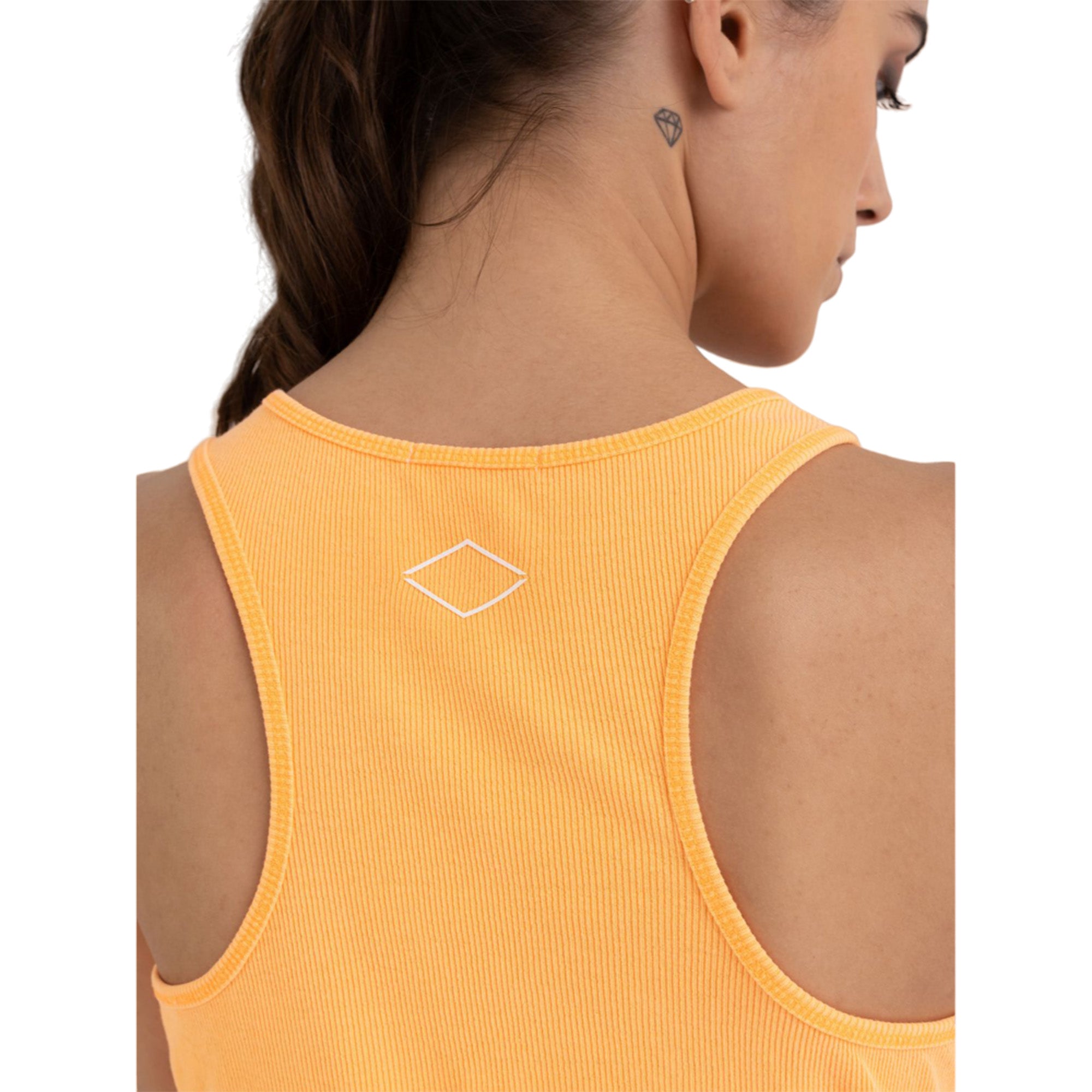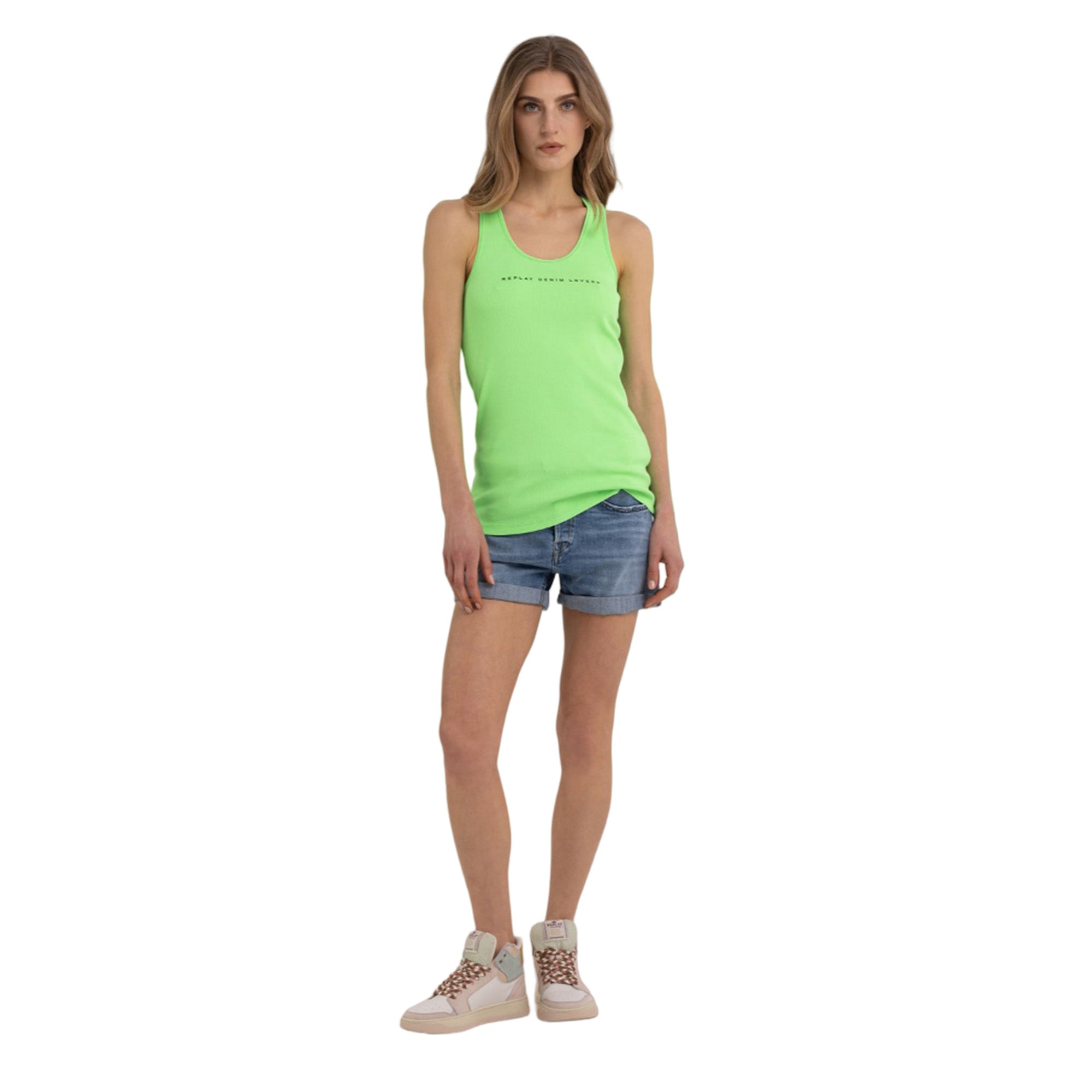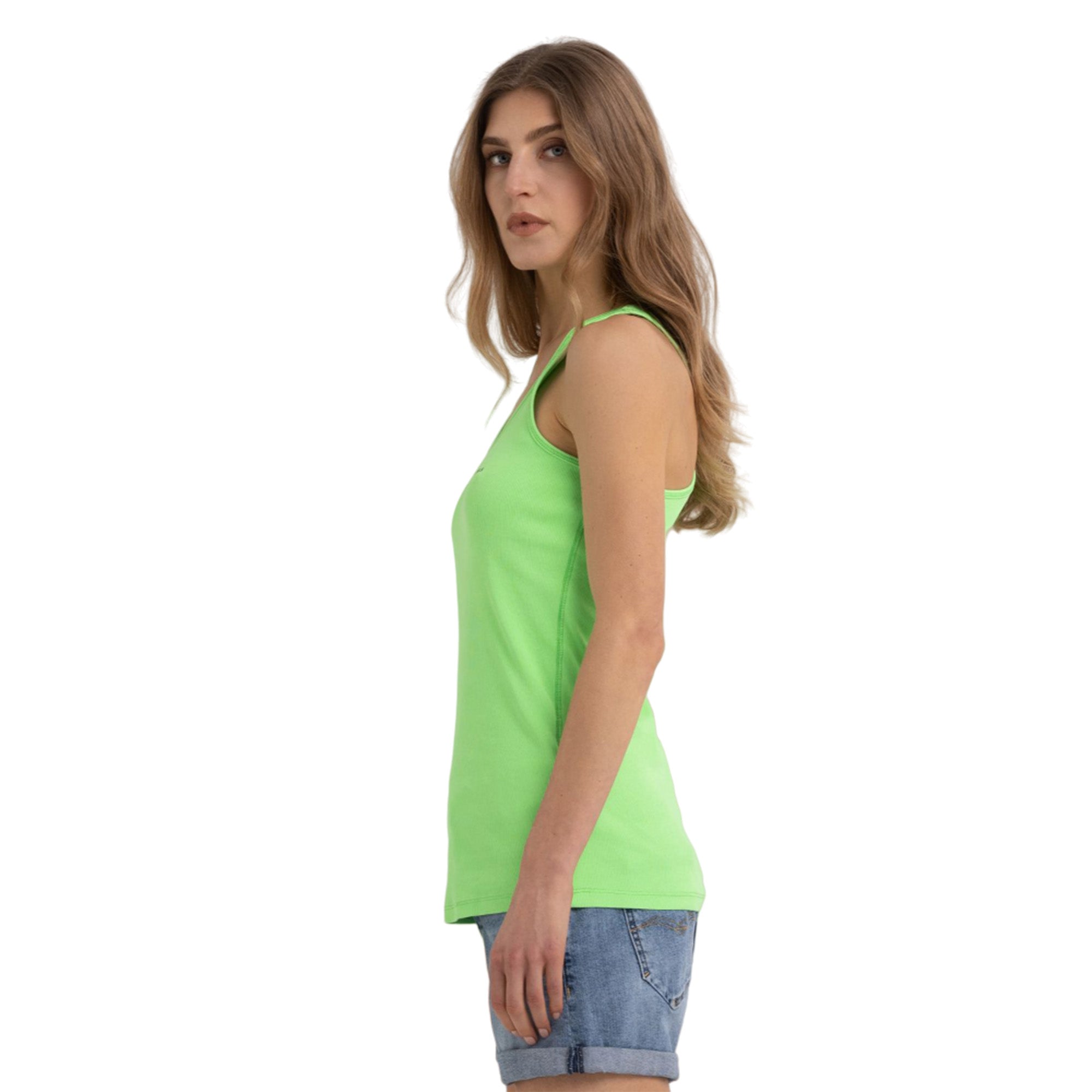 Crewneck top made of ribbed stretch cotton. The racerback garment features a tight fit. The item is enhanced by the customized print at the front.