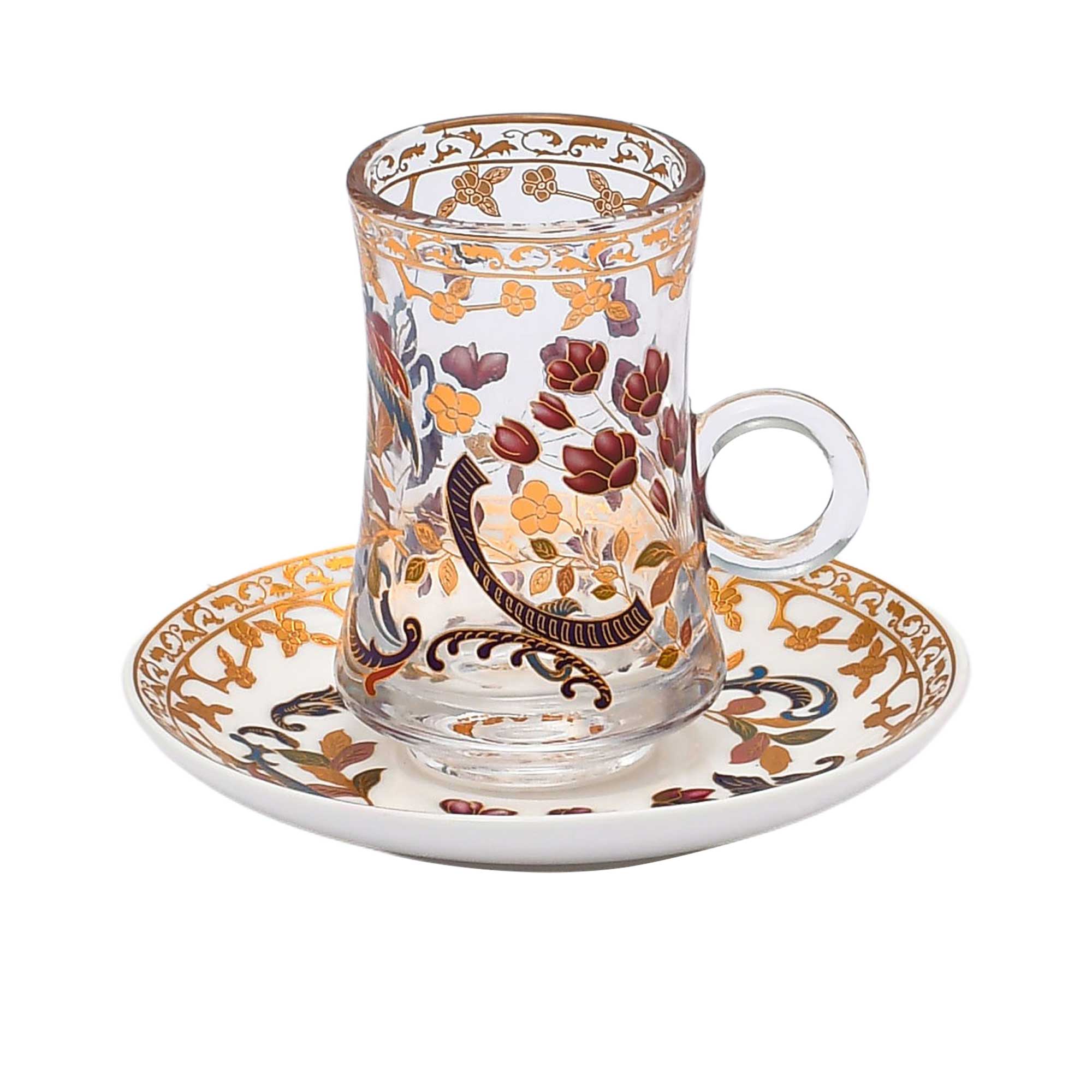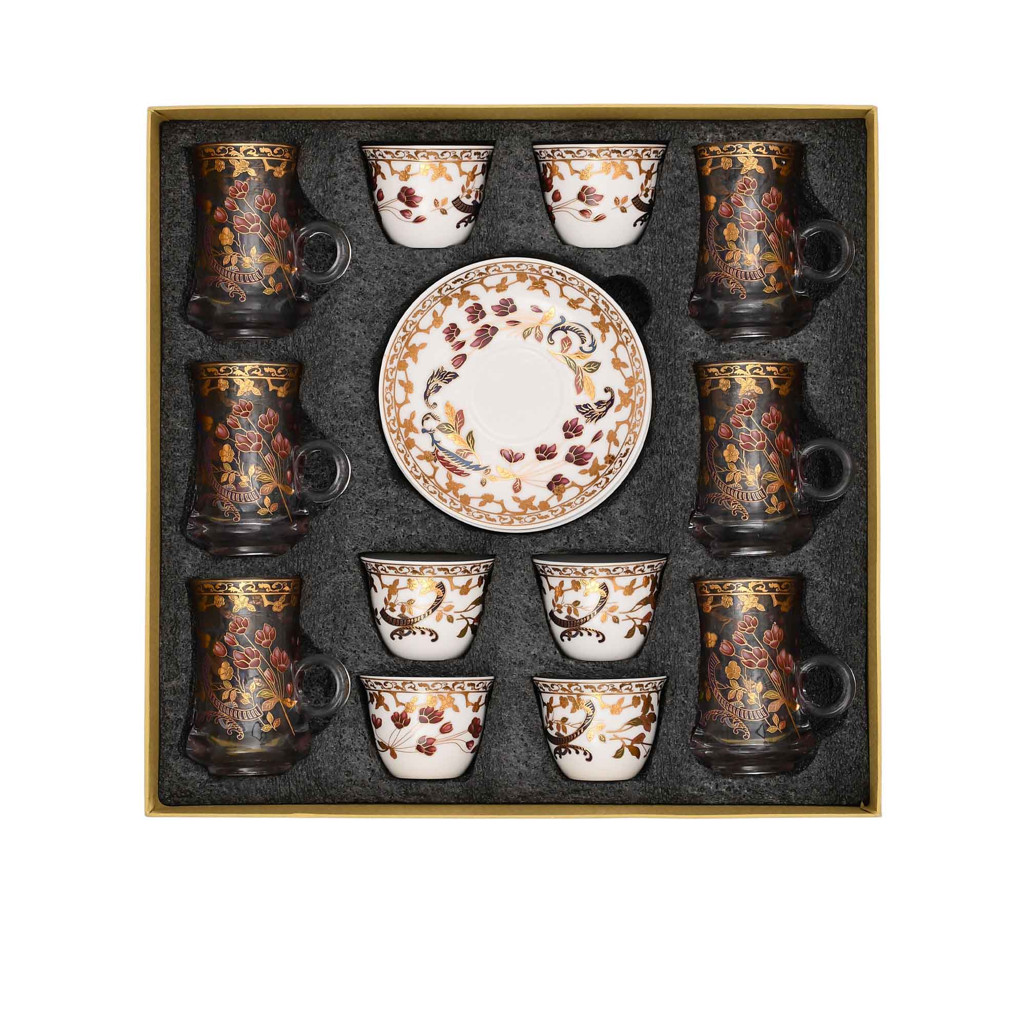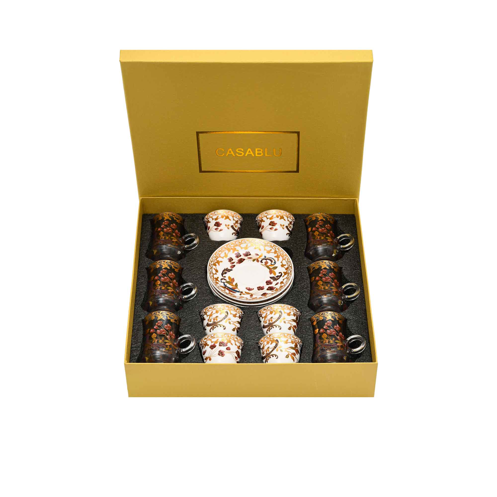 Casa Blu Floral Tea & Qahwa Cup Set (18pc) - Gold Accents