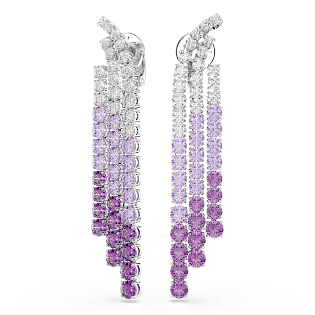 Swarovski Matrix Clip Earrings Color gradient Round cuts Purple Rhodium plated