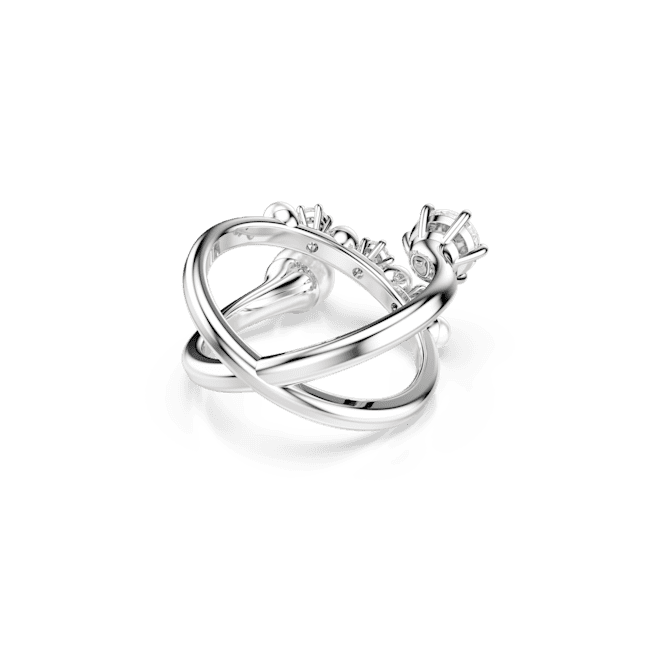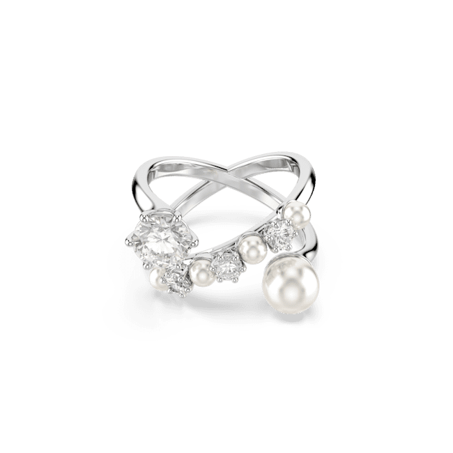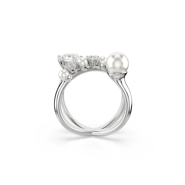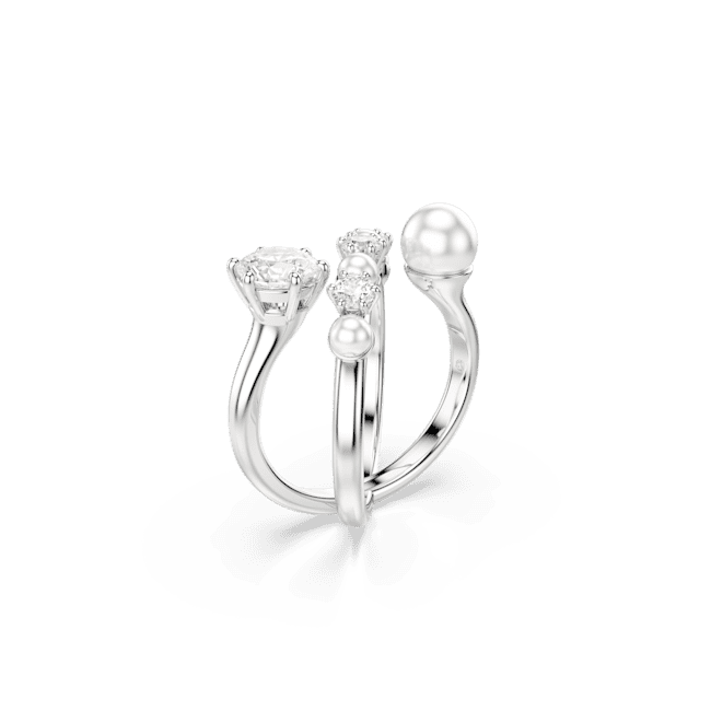 Swarovski Matrix Cocktail Ring Crystal Pearl Round Cut White Rhodium Plated