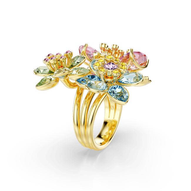 Swarovski Idyllia Ring Mixed Cuts Flower Multicolored Gold-Tone Plated