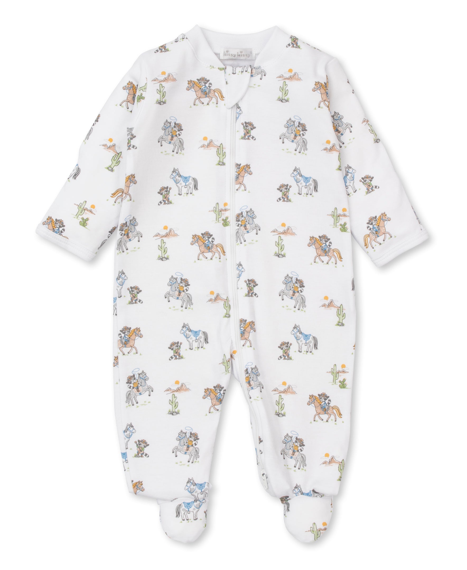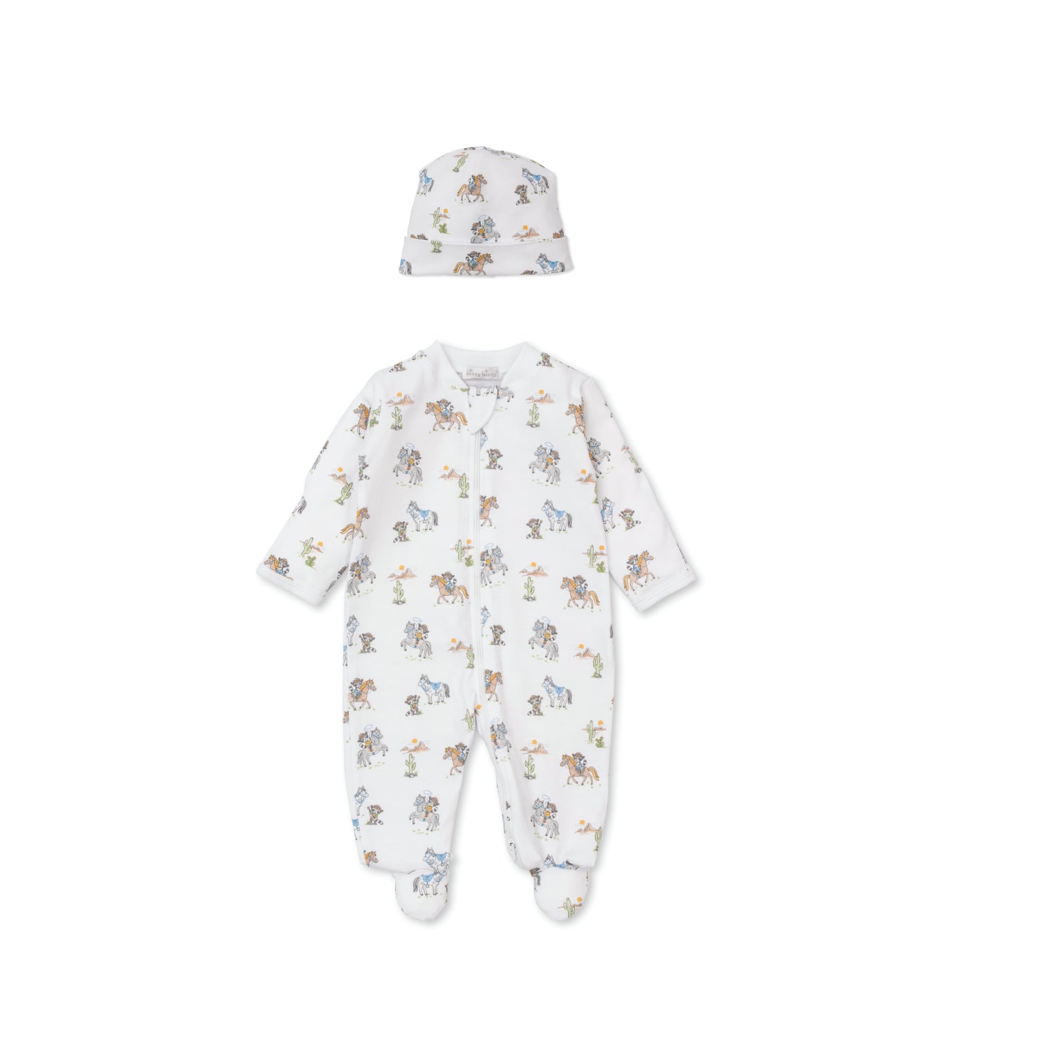 The Kissy Kissy Kids New Born Boy's Multicolor Set of Sleepsuit and Hat is a delightful and cozy outfit crafted from 100% premium Pima cotton, ensuring exceptional softness and breathability for your baby’s delicate skin. Featuring a charming cowboy print, this set adds a playful and adventurous touch to your newborn’s wardrobe. The sleepsuit is designed with a convenient zip fastening that runs from the neck to the leg, making dressing and diaper changes effortless. The matching hat completes the coordinated look, keeping your little one snug and stylish. This set perfectly combines comfort, practicality, and adorable design for your baby boy.