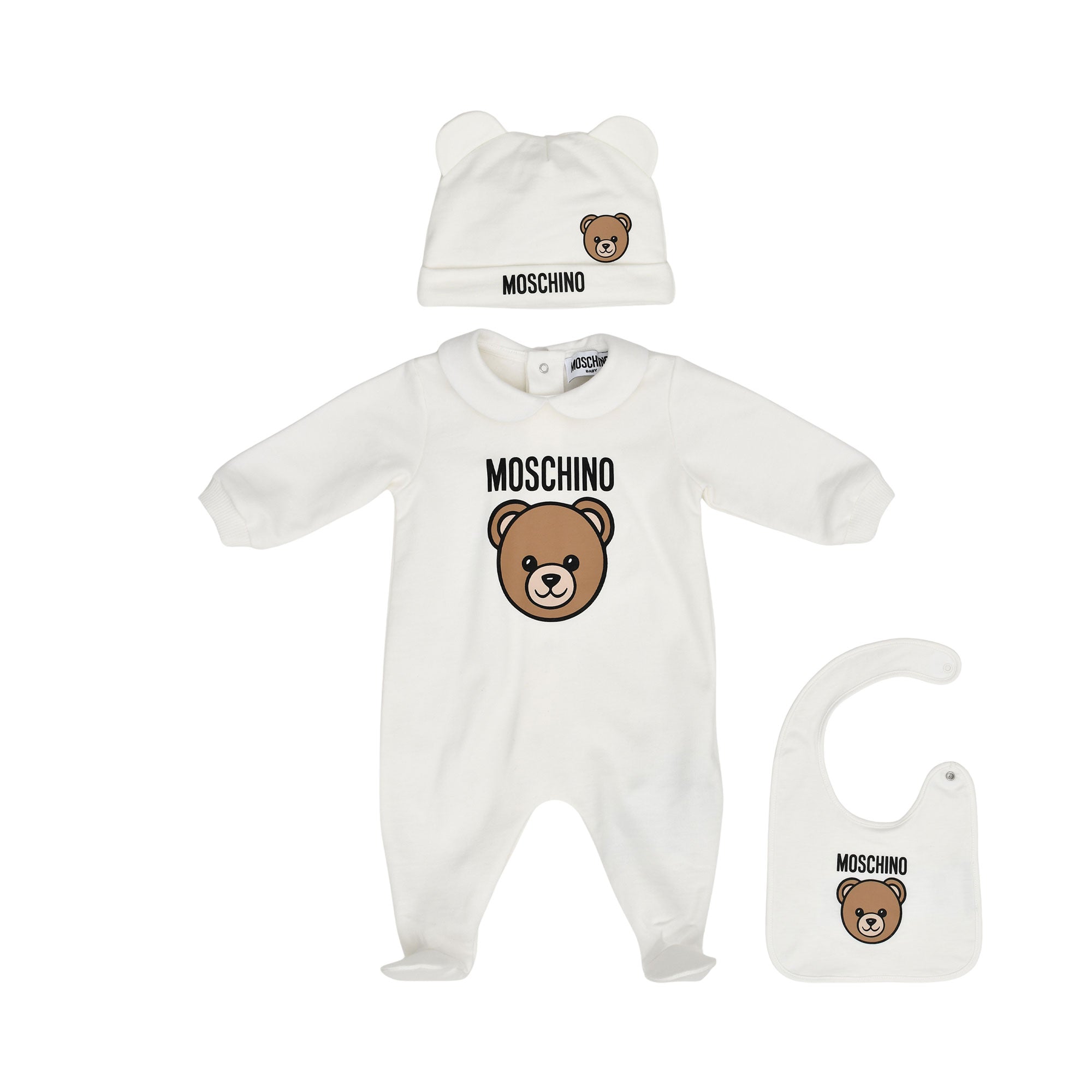 Moschino Kids New Born Set of Sleepsuit & Hat & Bib