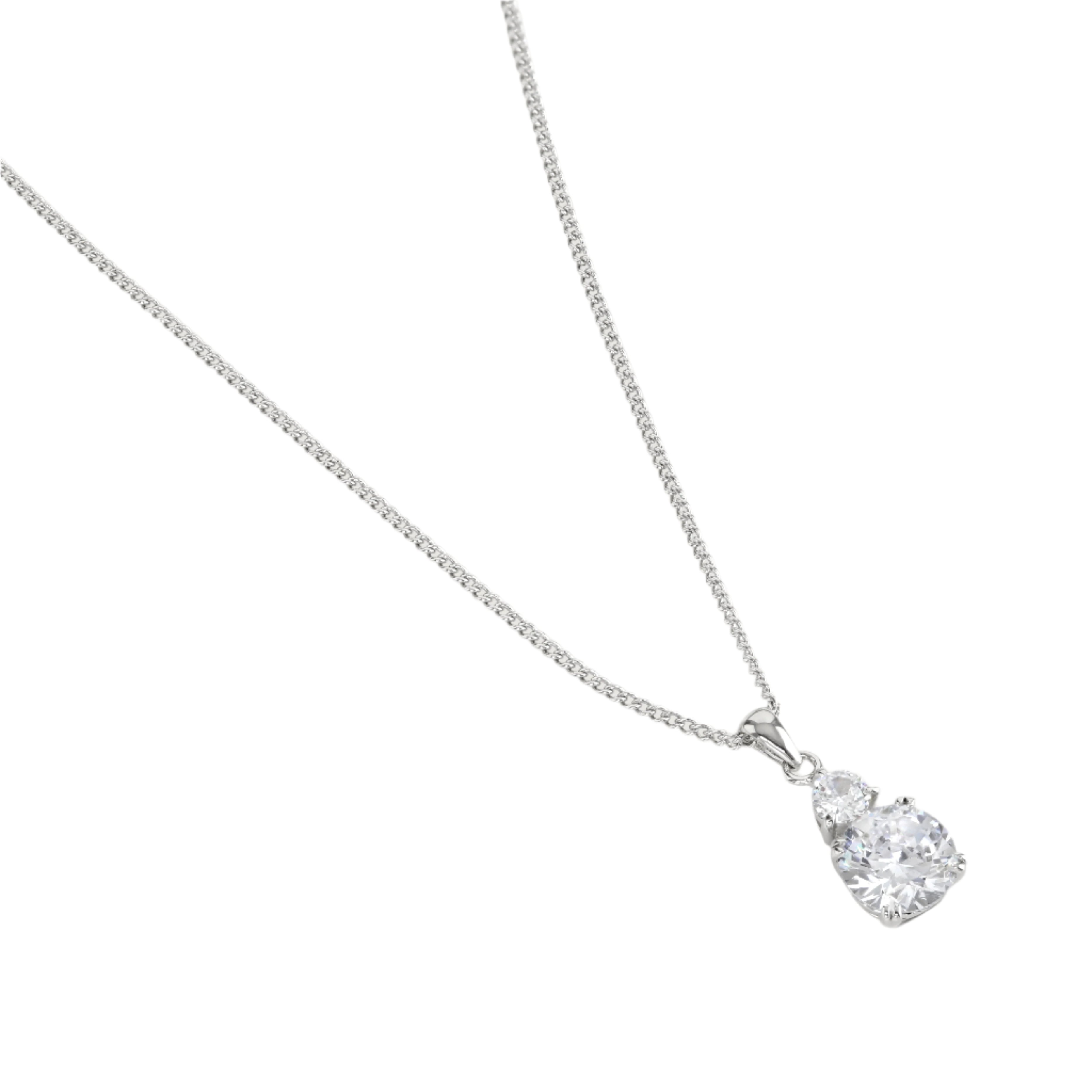 • Buckley London Clear Round Double Drop Pendant in Rhodium exudes timeless elegance and refined craftsmanship.