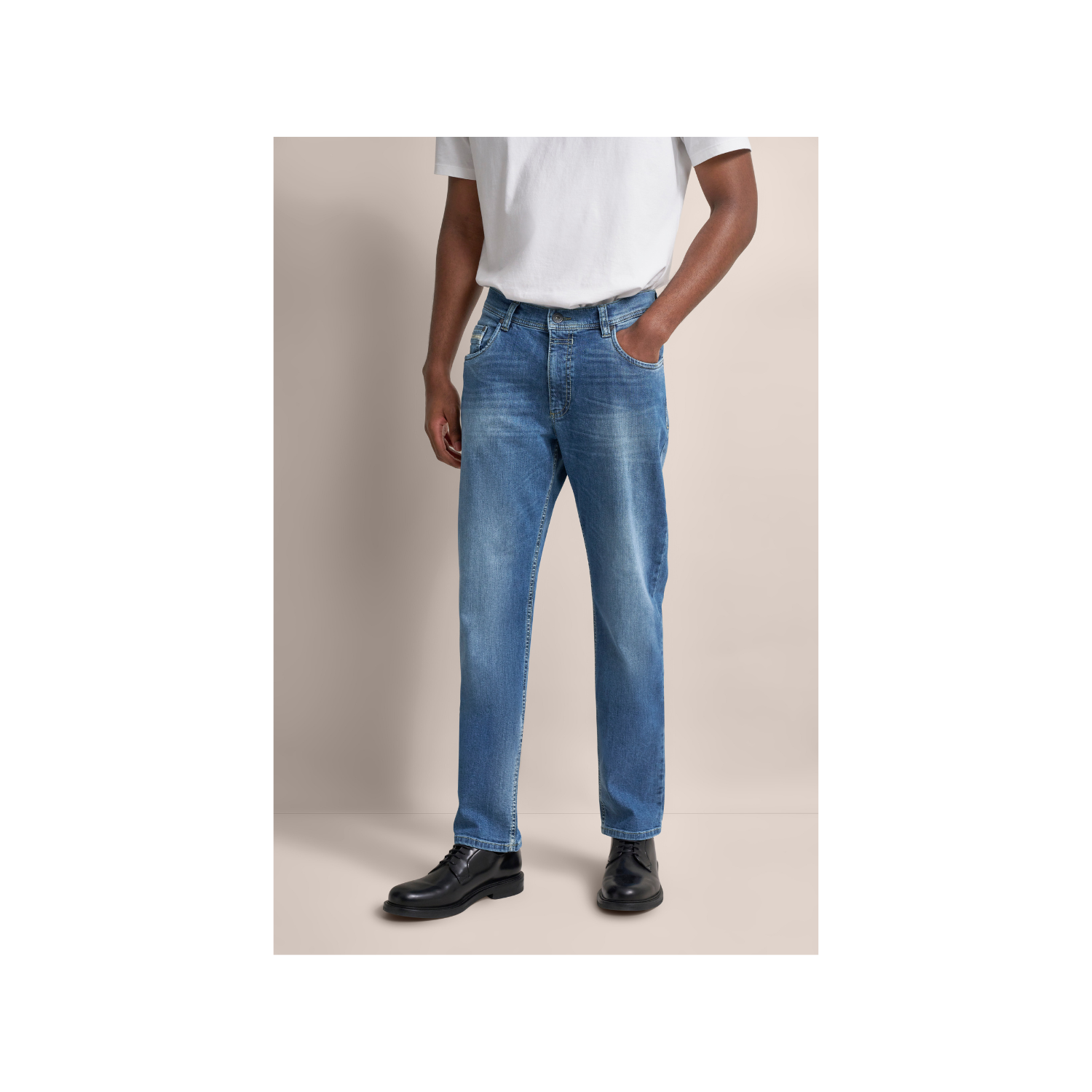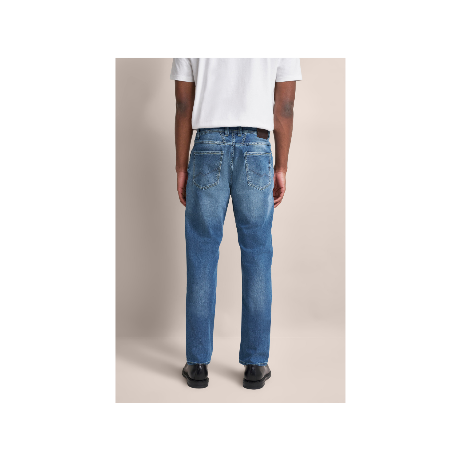 The Bugatti Men's Jeans showcase a stylish, slightly distressed look that adds a modern and edgy touch to your casual wardrobe. Featuring two rounded side pockets at the front, these jeans also include a practical watch pocket adorned with an inserted label for a subtle brand detail. The rear patch pockets are highlighted by decorative stitching, enhancing the overall aesthetic with a refined yet relaxed vibe. Designed with six wide belt loops, these jeans offer the flexibility to accessorize with a belt for an enhanced fit and personalized style. Combining durability with contemporary design elements, the Bugatti Men's Jeans are an ideal choice for those seeking comfort and fashion in one versatile pair.