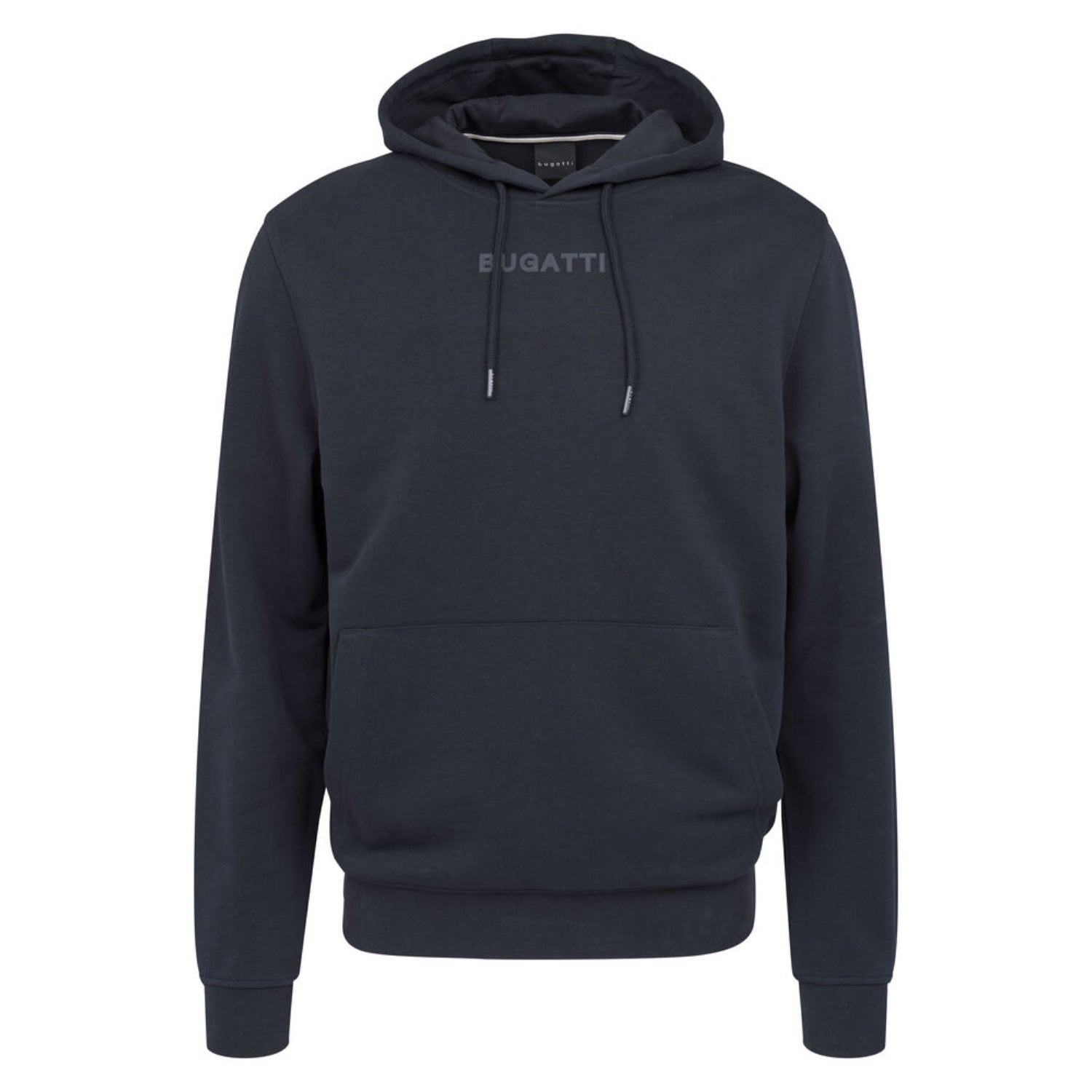 The Bugatti Men's Navy Sweatshirt Hooded is a stylish and functional addition to any casual wardrobe. Crafted for comfort, this hoodie features a soft fabric that provides warmth and coziness, making it perfect for cooler days. It includes a spacious hoodie pocket, ideal for storing essentials or keeping hands warm. The adjustable drawstring allows for a customizable fit around the hood, enhancing both comfort and style. With a clean, plain design, the sweatshirt is adorned with a subtle logo and a striking Bugatti print on the front, adding a touch of sophistication to the overall look. This versatile piece can be easily paired with jeans or joggers for a relaxed yet fashionable outfit, making it an excellent choice for casual outings or lounging at home. Whether you're running errands or enjoying a leisurely day, the Bugatti Men's Navy Sweatshirt Hooded combines practicality with modern style.