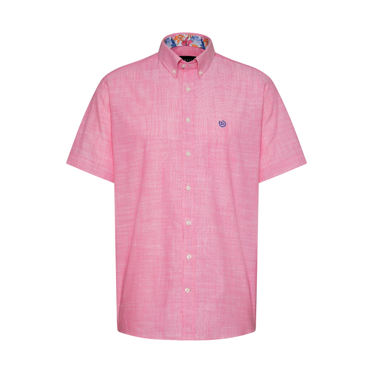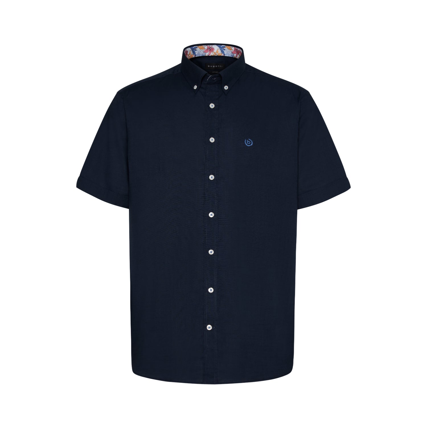 Bugatti Men's Short-Sleeve Button-Down Shirt with Patterned Inner Collar