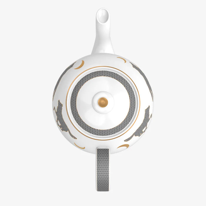 A candle scented with Coriander from Russian Leather in a tea pot made with white Bone china porcelain, hand gold-gilded and made in France. A quality of porcelain that is both delicate and resistant.