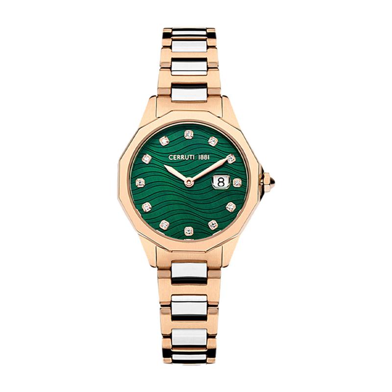Cerruti 1881 Jesina Women's Green Dial Rose Gold/Silver Watch
