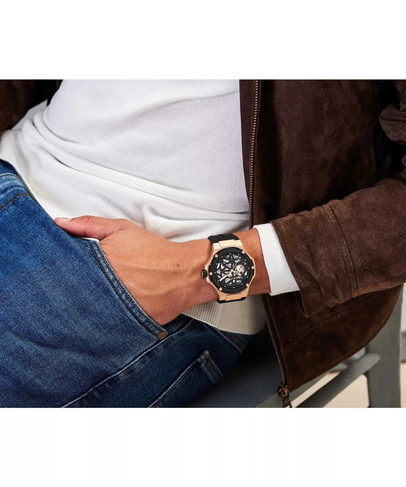 The Cerruti Lucardo Automatic CIWGR0007107 combines traditional elegance with modern touches. The rose gold-colored stainless steel envelope is surrounded by a black bezel, adding character and distinction to the overall look. The G3265ZH mechanism, housed inside the case, can be admired thanks to the glassed-in bezel, allowing a full view of the precision and details of the design. The black silicone strap perfectly harmonizes with the dial, emphasizing the sophisticated nature of the watch. A sub-dial with a seconds hand and a date of the days of the month complete the functionality, making this model not only visually appealing, but also extremely practical.