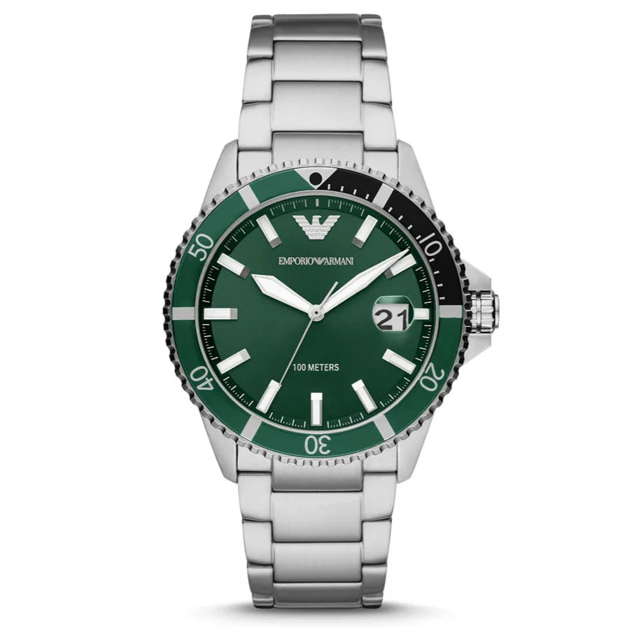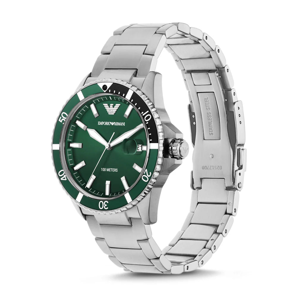 Emporio Armani Gents Green Dial Three-Hand Date Stainless Steel Watch