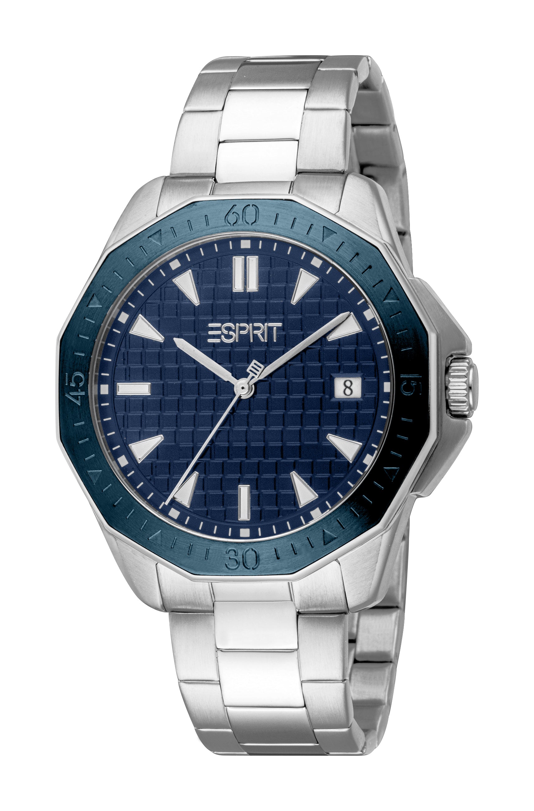 Esprit Men’s Octagon Blue Dial Watch – Stainless Steel Bracelet, 10 ATM Water Resistant