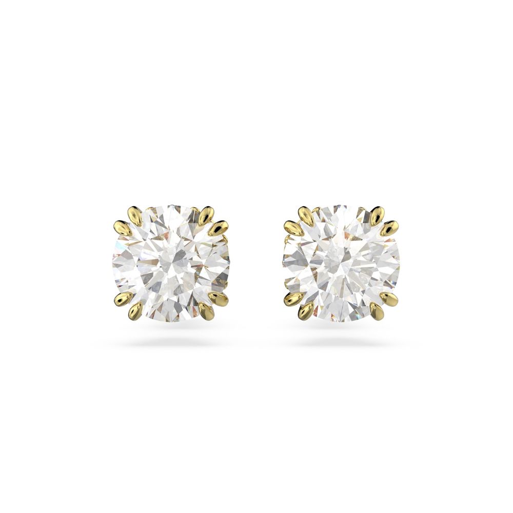 Swarovski Stilla stud earrings, Round cut, White, Gold-tone plated