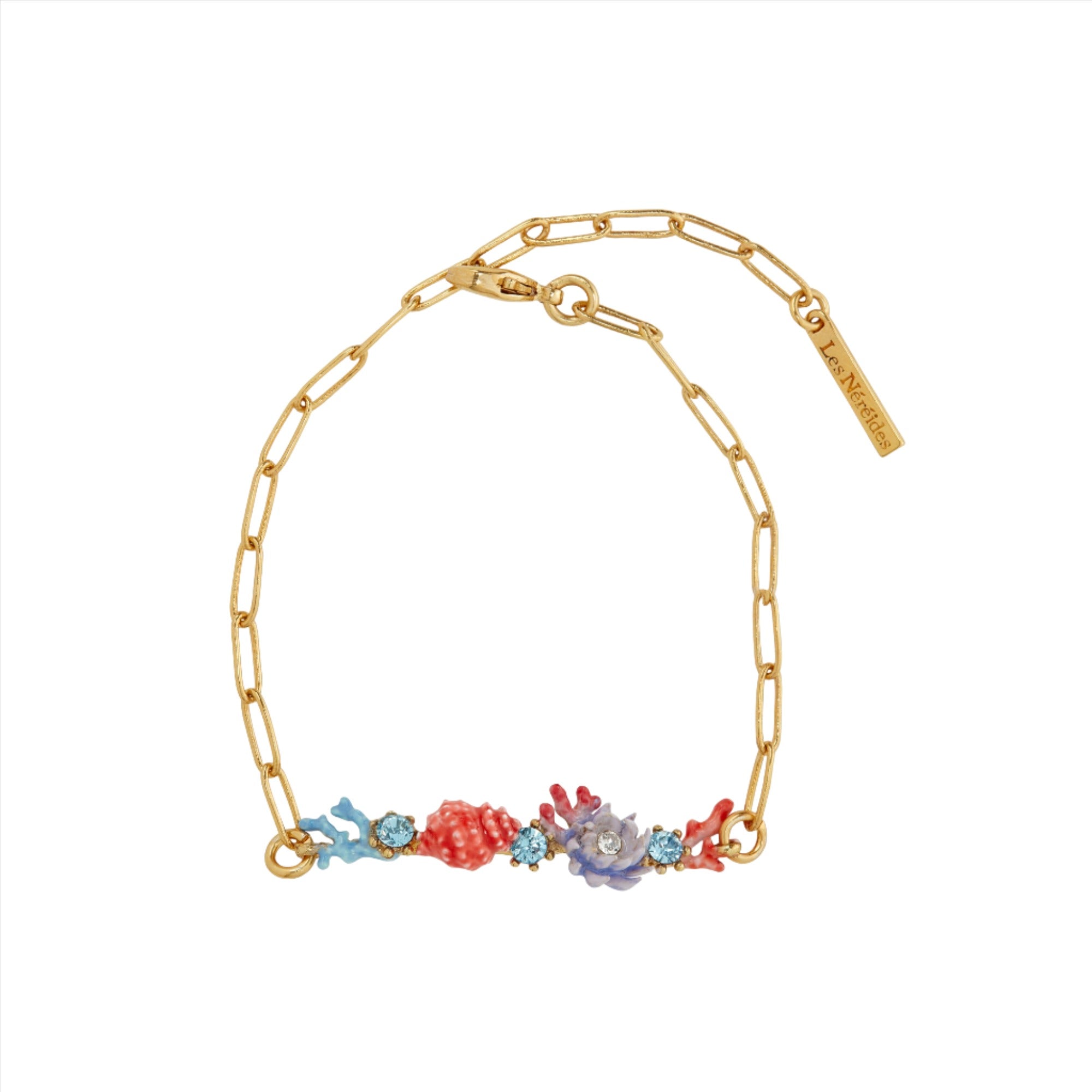 - Les Nereides Women's Seashell, enameled group corals and cut glass stone Bracelet.