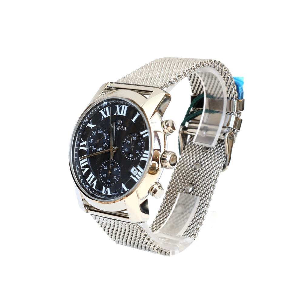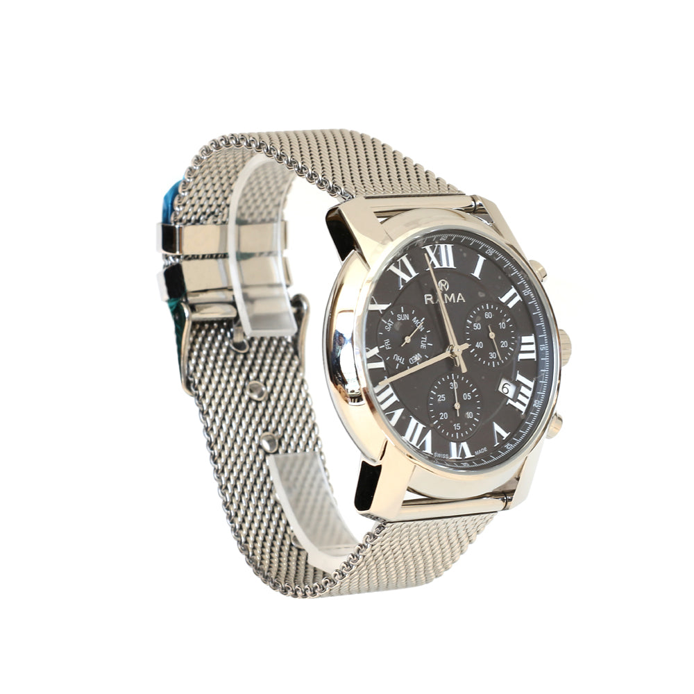 Rama men's watch is a stylish and functional timepiece, perfect for any occasion. It features a sleek stainless steel mesh metal bracelet that offers durability and comfort. The blue dial adds a pop of color to the overall design, making it stand out from other traditional watches. The watch also has a chronograph quartz movement, making it accurate and precise for timekeeping. Its classic and modern design make it a versatile accessory, suitable for both formal and casual wear. Whether you're in a board meeting or a weekend brunch, Rama men's watch will complement your style and enhance your overall look. SPECIFICATIONS