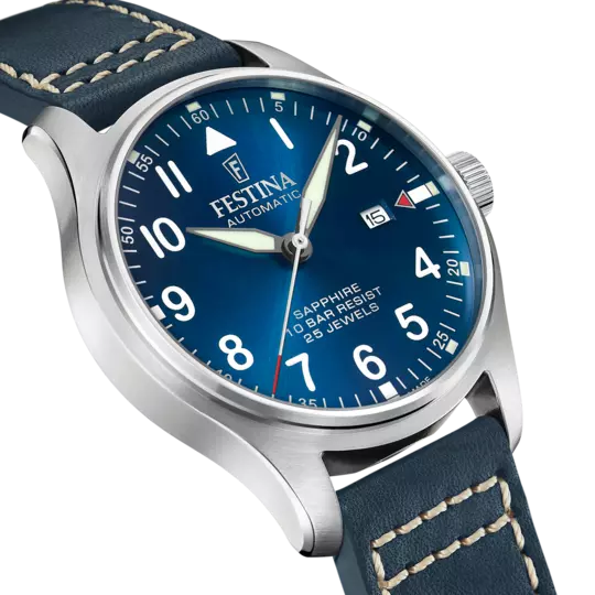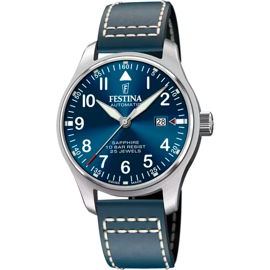 Festina Automatic Gents Blue Dial with Blue Leather Strap Watch