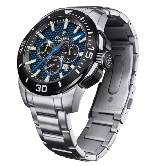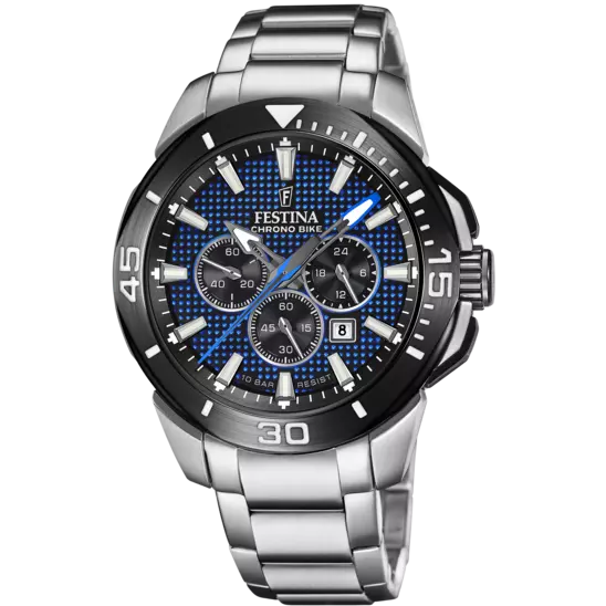 The Festina Men's Chrono Bike Black Dial Watch is a sleek and modern timepiece that exudes style and functionality. The watch features a durable steel bracelet and a bold blue dial, making it a versatile accessory for everyday wear. The folding clasp ensures a secure fit on the wrist. The watch is powered by a precise and reliable quartz movement, ensuring accurate timekeeping. With its stylish design and reliable performance, the Festina Men's Chrono Bike Blue Dial Watch is a must-have for any fashion-forward man.