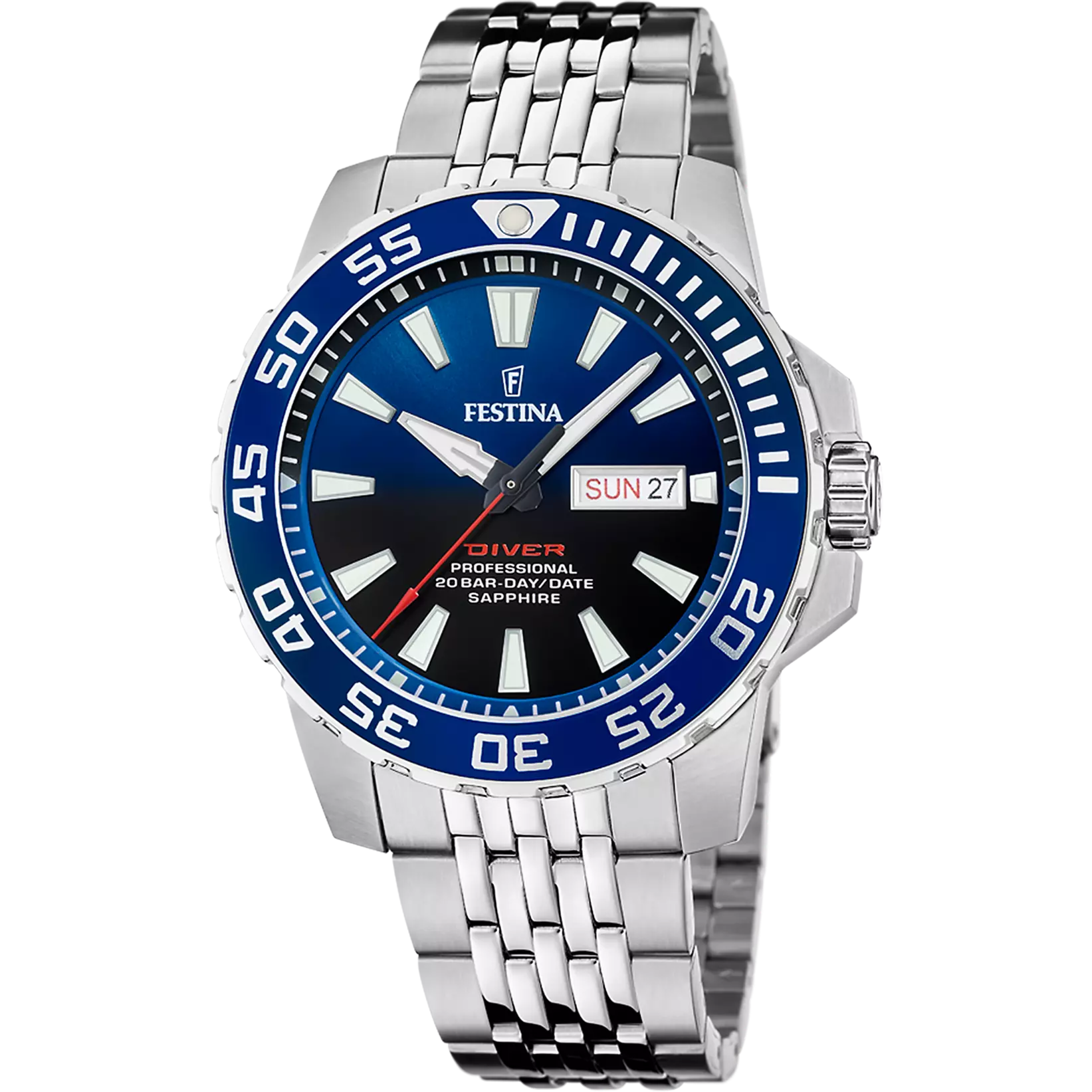 Festina men's watch F20661/1 with a stainless steel case and a sapphire glass fitted with a stainless steel bracelet.