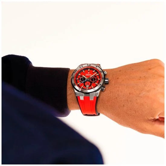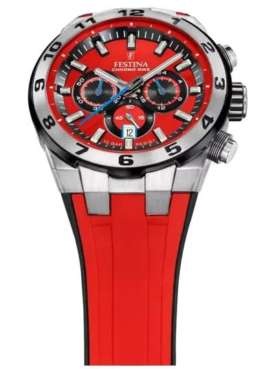 Festina Chrono Bike Gents Red Dial Red Rubber Strap Watch
