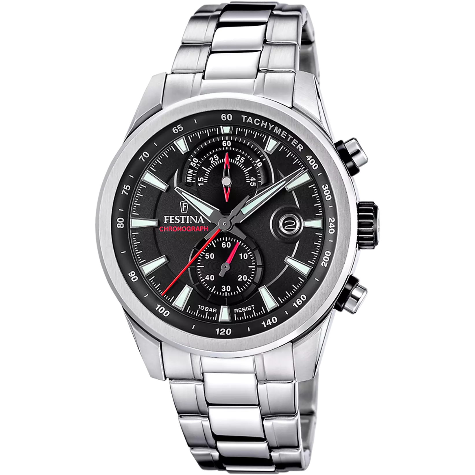 Festina Men's Black Dial Silver Stainless Steel Chronograph Watch