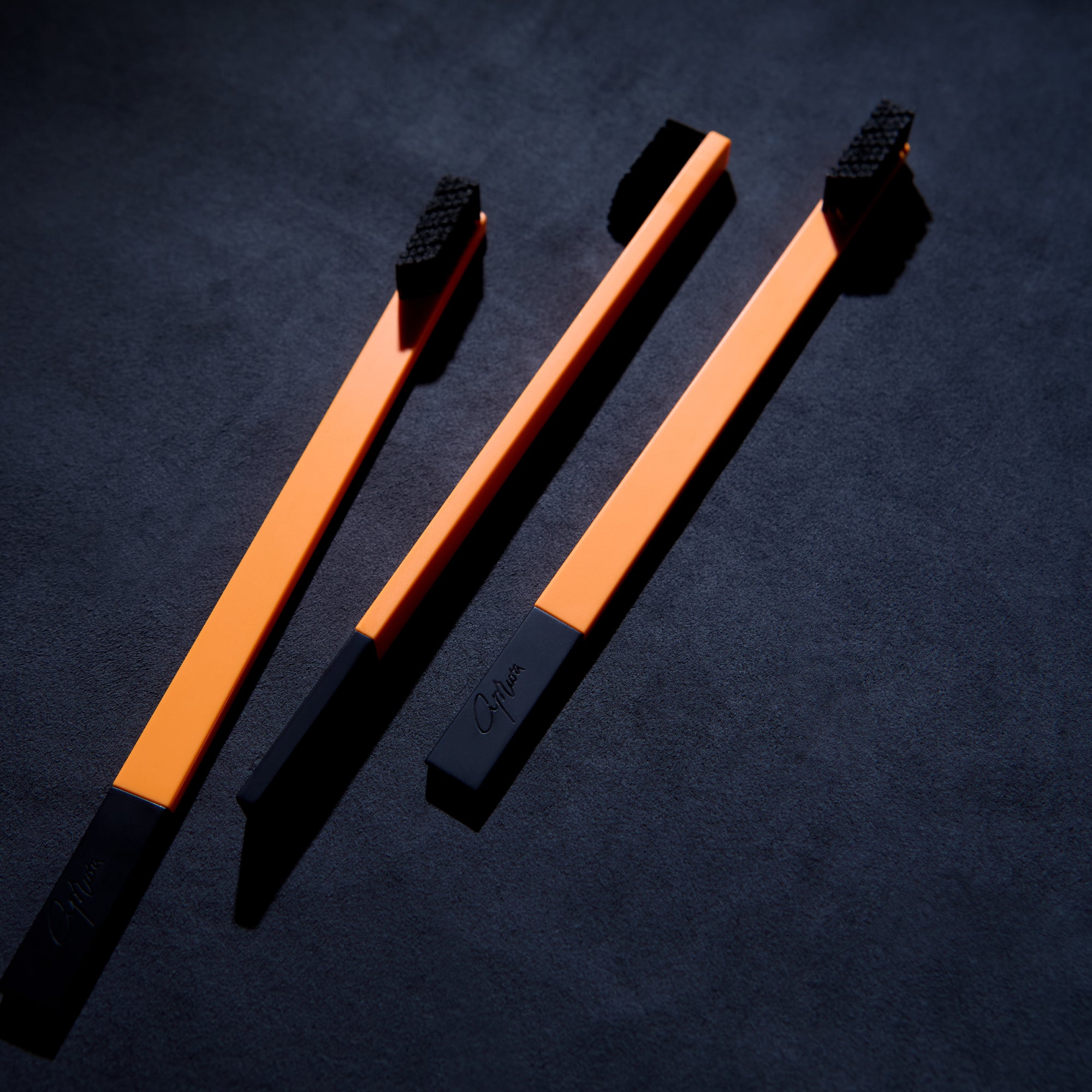 Thanks to its patented silhouette and matte surface, the toothbrush fits comfortably in hand and uses 30% less material than conventional toothbrushes.