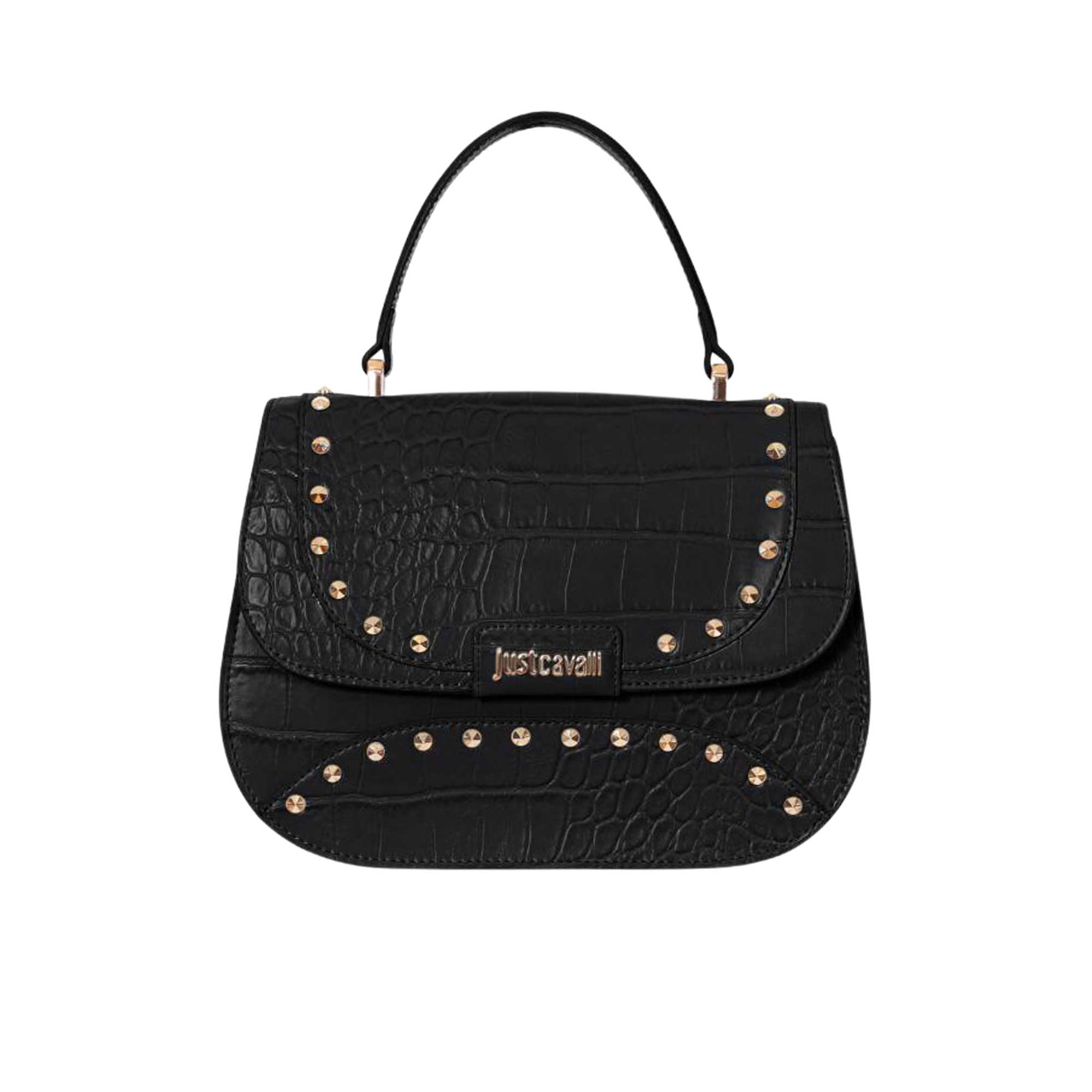 Branding: Features the "Just Cavalli" logo in gold hardware centered below the flap.