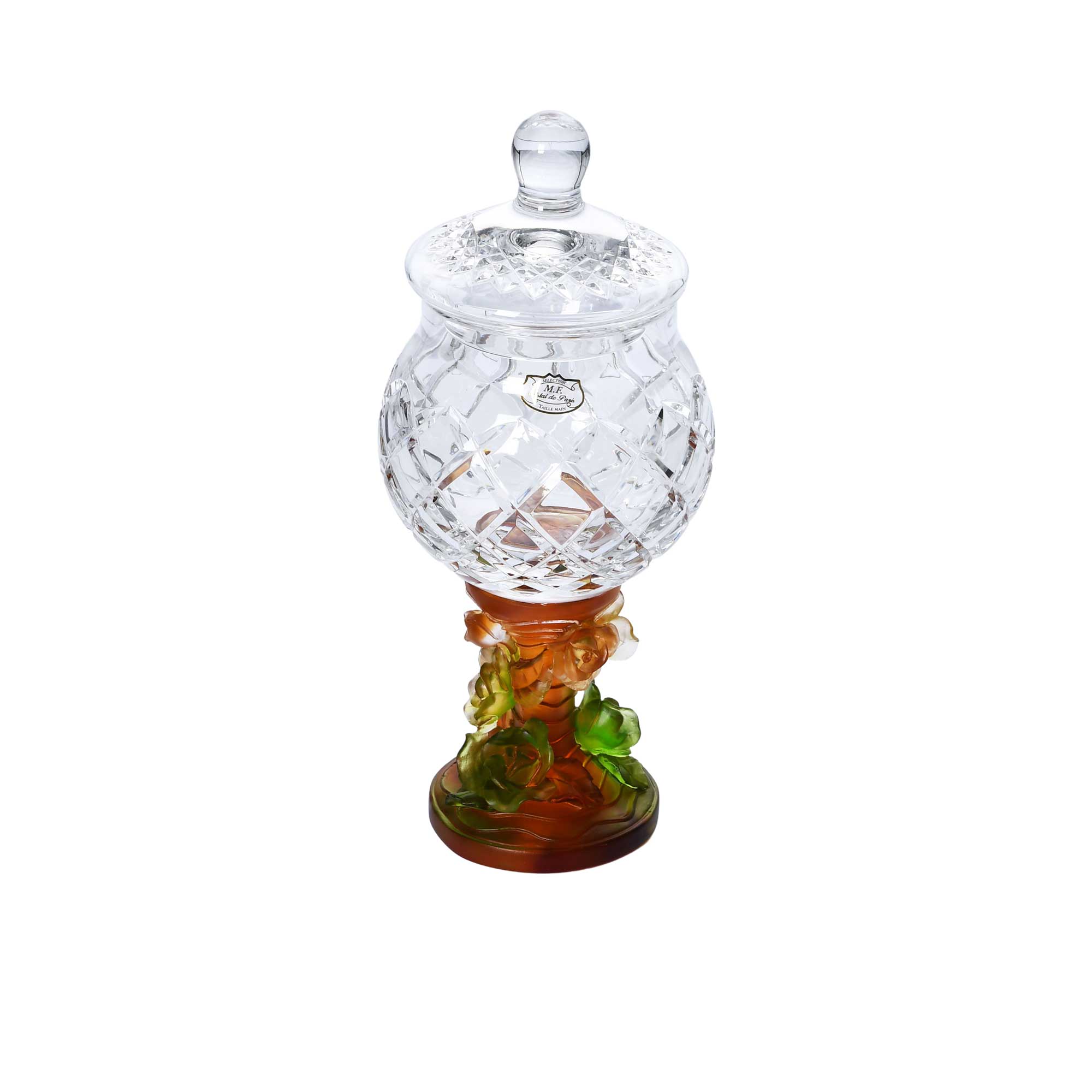 • The Cristal De Paris Bonbonniere Myriam Pied Fleur Ambre Cristal is an exquisite decorative jar.