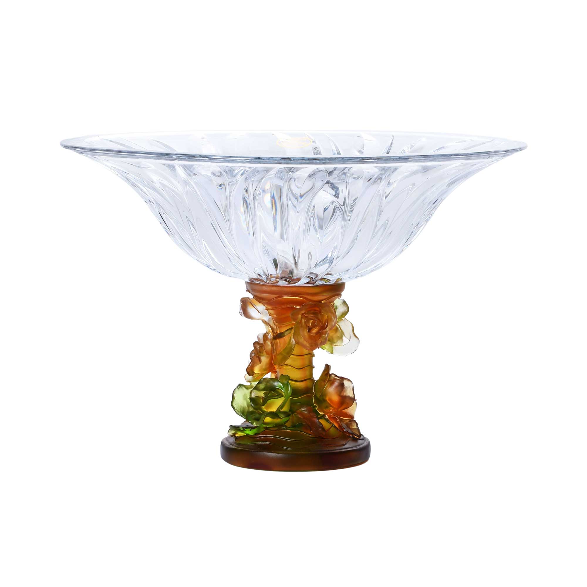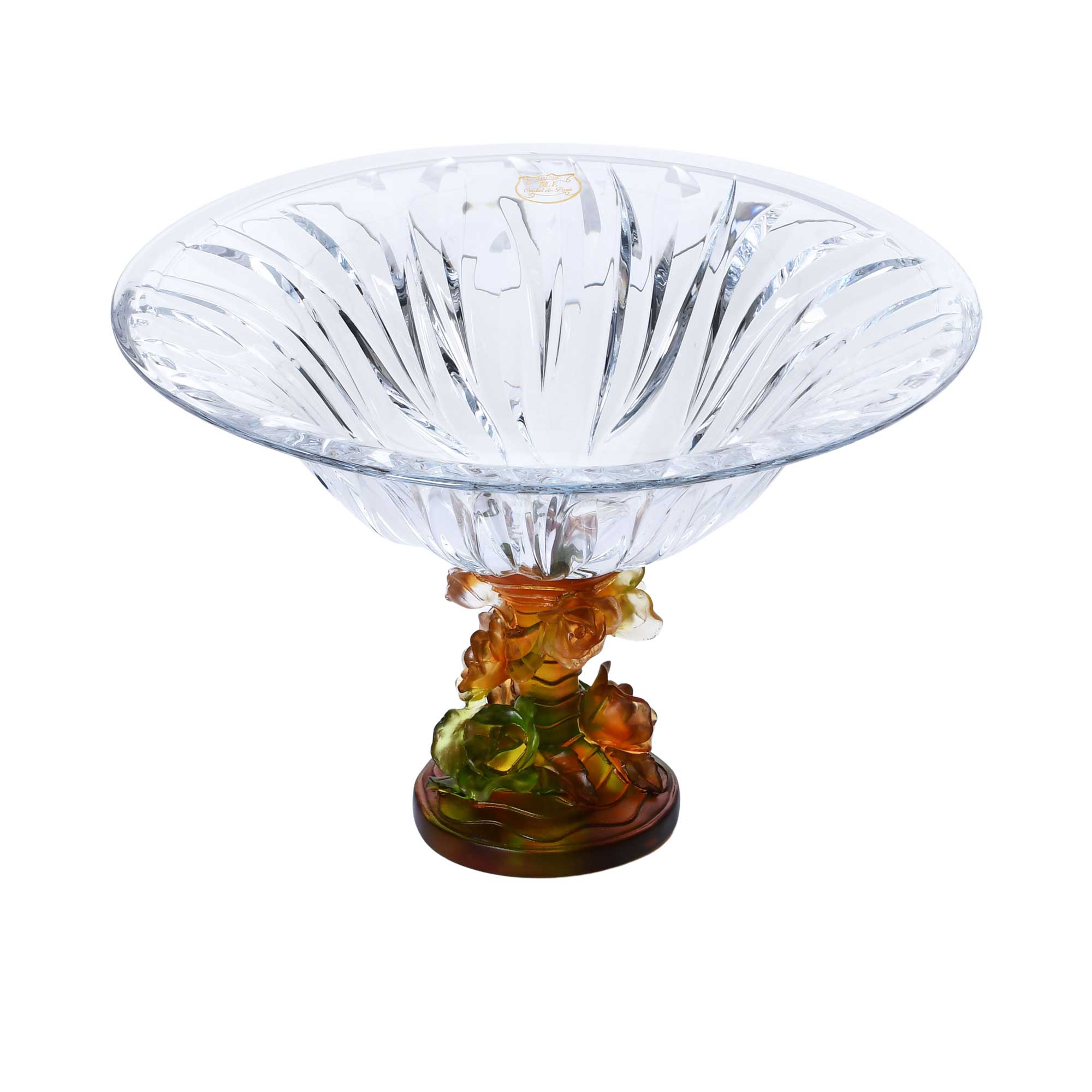 • The contrast between the clear crystal bowl and the colorful, nature-inspired base creates a striking visual appeal.