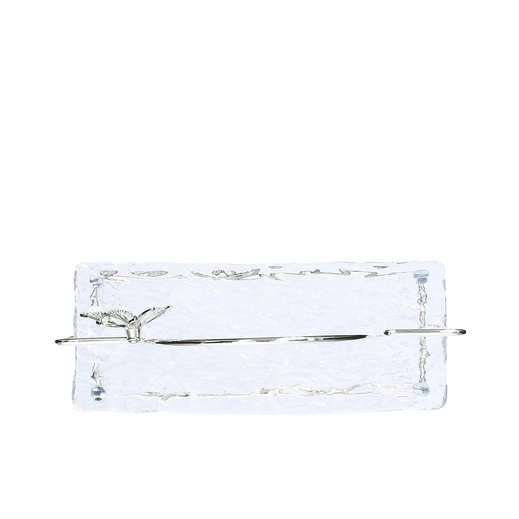 • Holds two clear, textured glass bowls with a delicate fluted pattern