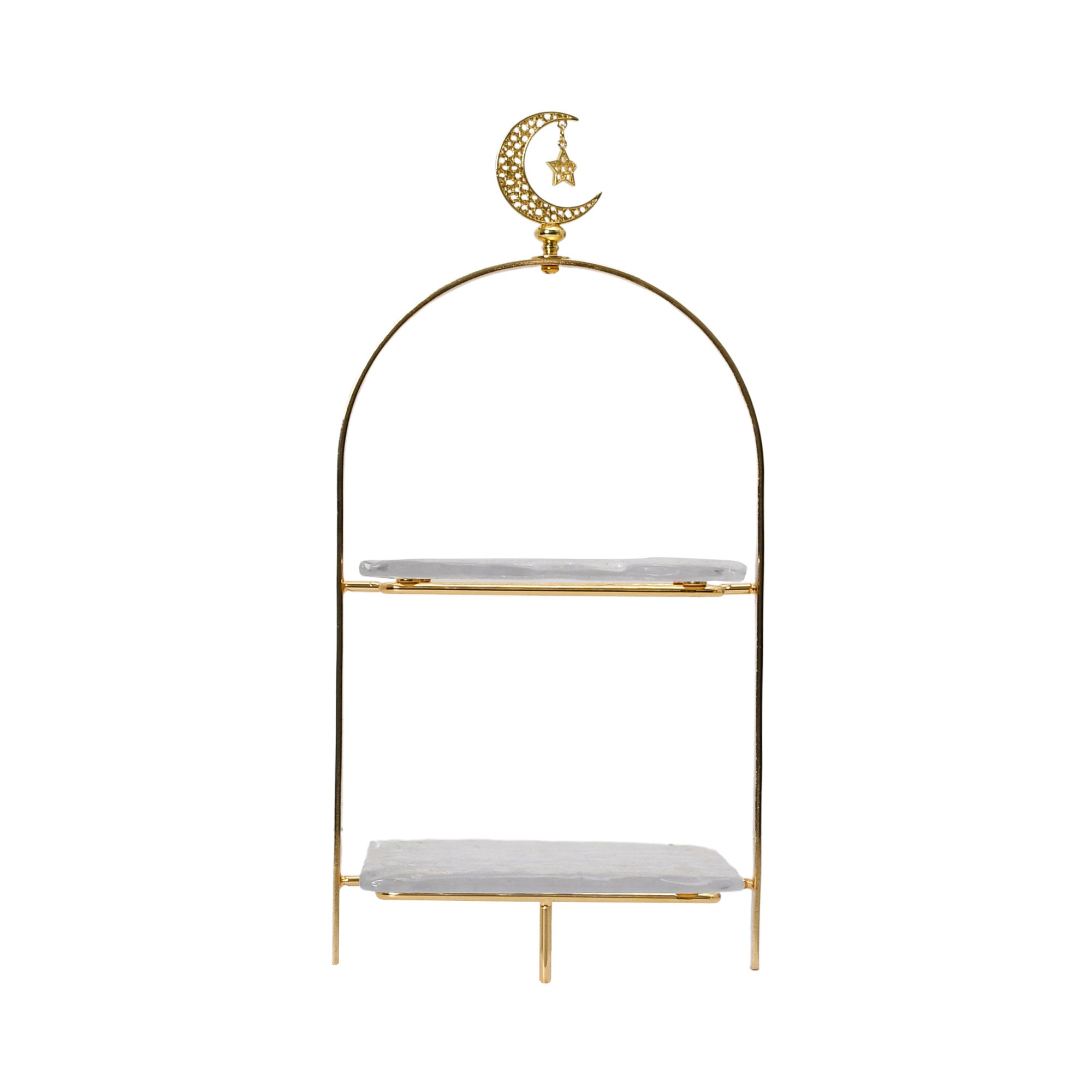 Elevate your dessert or appetizer display with this elegant ELE 4PM two-tiered serving stand. This sophisticated piece is a beautiful and functional addition to any table, perfect for special occasions or daily use.
