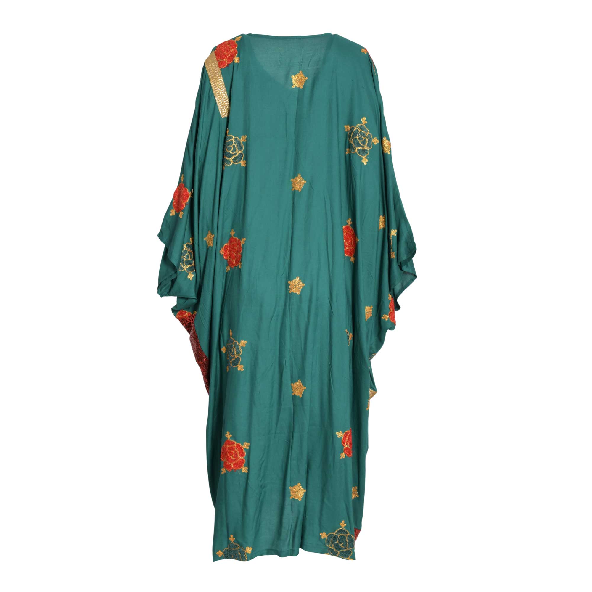 | The Fahm Women's Green Dress in kaftan style is a must have for any wardrobe. This dress is incredibly versatile and can be dressed up or down to fit the occasion. The fabric is lightweight and breathable, making it perfect for those hot summer days. The beautiful sequins embroidery all over is a unique touch that adds a bit of elegance to the look. The long sleeves and round neck add to the overall charm. This dress can be dressed up with sparkling accessories and sandals, or dressed down with flats. No matter how you style it, you are sure to look fabulous. SPECIFICATIONS: