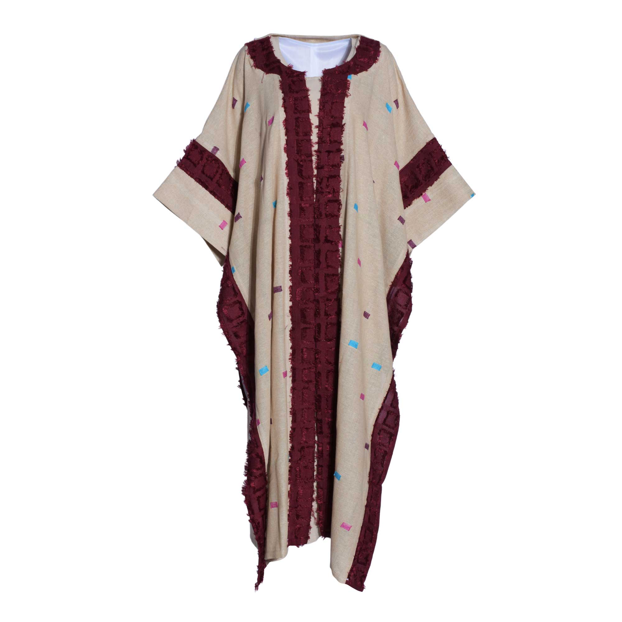 | The Fahm Women's Dress & Abaya Brown Set is a stunning piece of clothing that exudes elegance and sophistication. Made from premium quality fabric, this dress is soft and comfortable. It comes in a free size, making it suitable for women of all body types. The beautiful multicolor rectangular pattern and trim with contrast color adds a touch of glamour and style to the overall design. This set features a round neck and long cuff sleeves that is both chic and flattering. The premium quality fabric is soft against the skin, and the free size design ensures that it fits comfortably on any body type. Whether you are attending a formal event or a casual outing with friends, the Fahm Women's Dress & Abaya Brown Set is the perfect choice. SPECIFICATIONS: