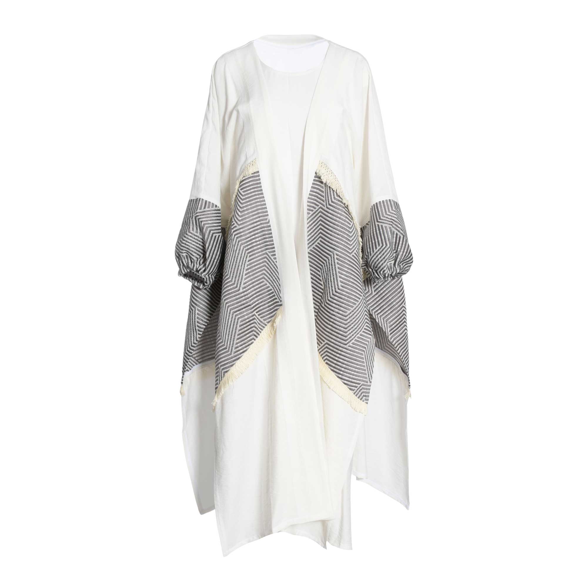 Fahm Dress & Abaya (Set) White & Grey Stripes free Size