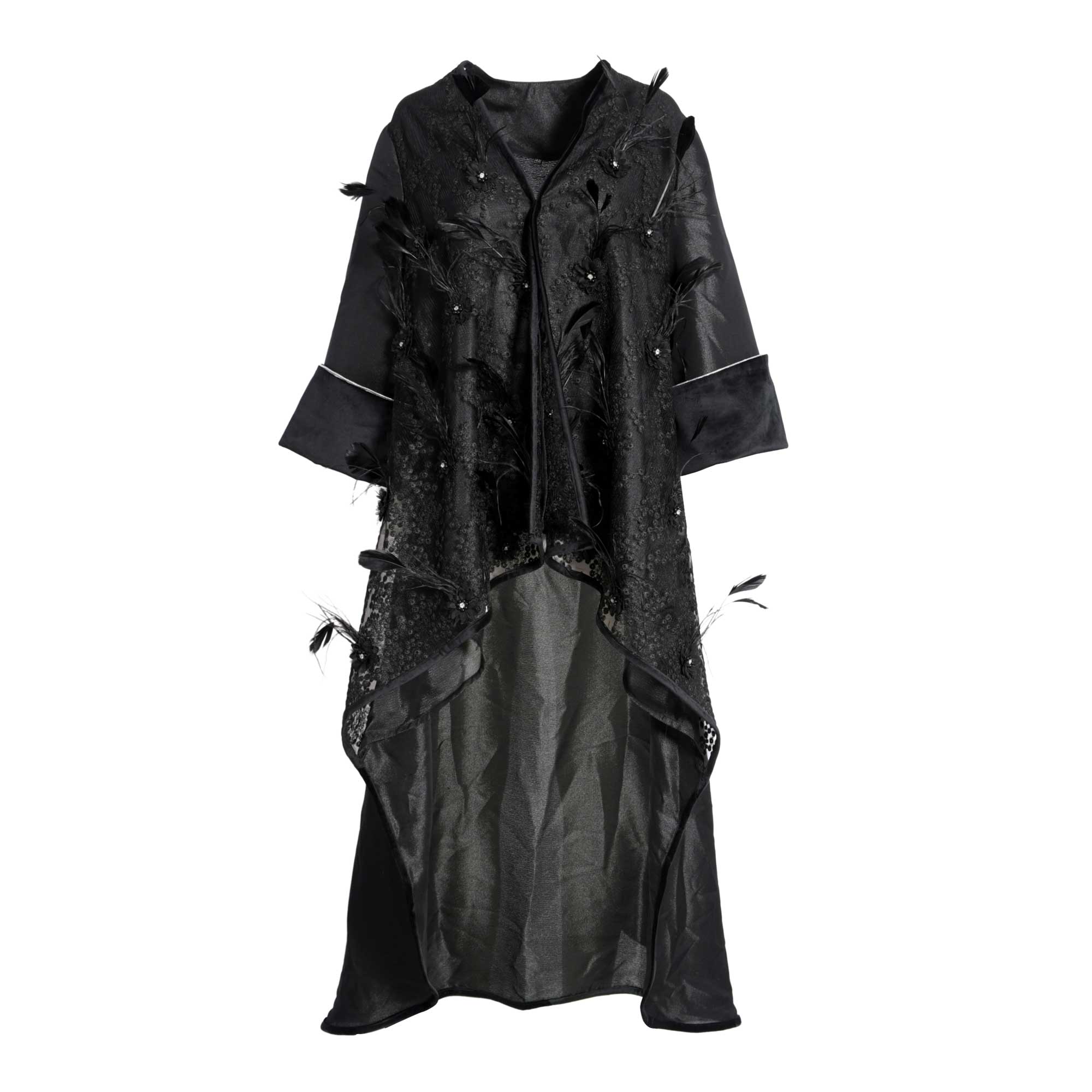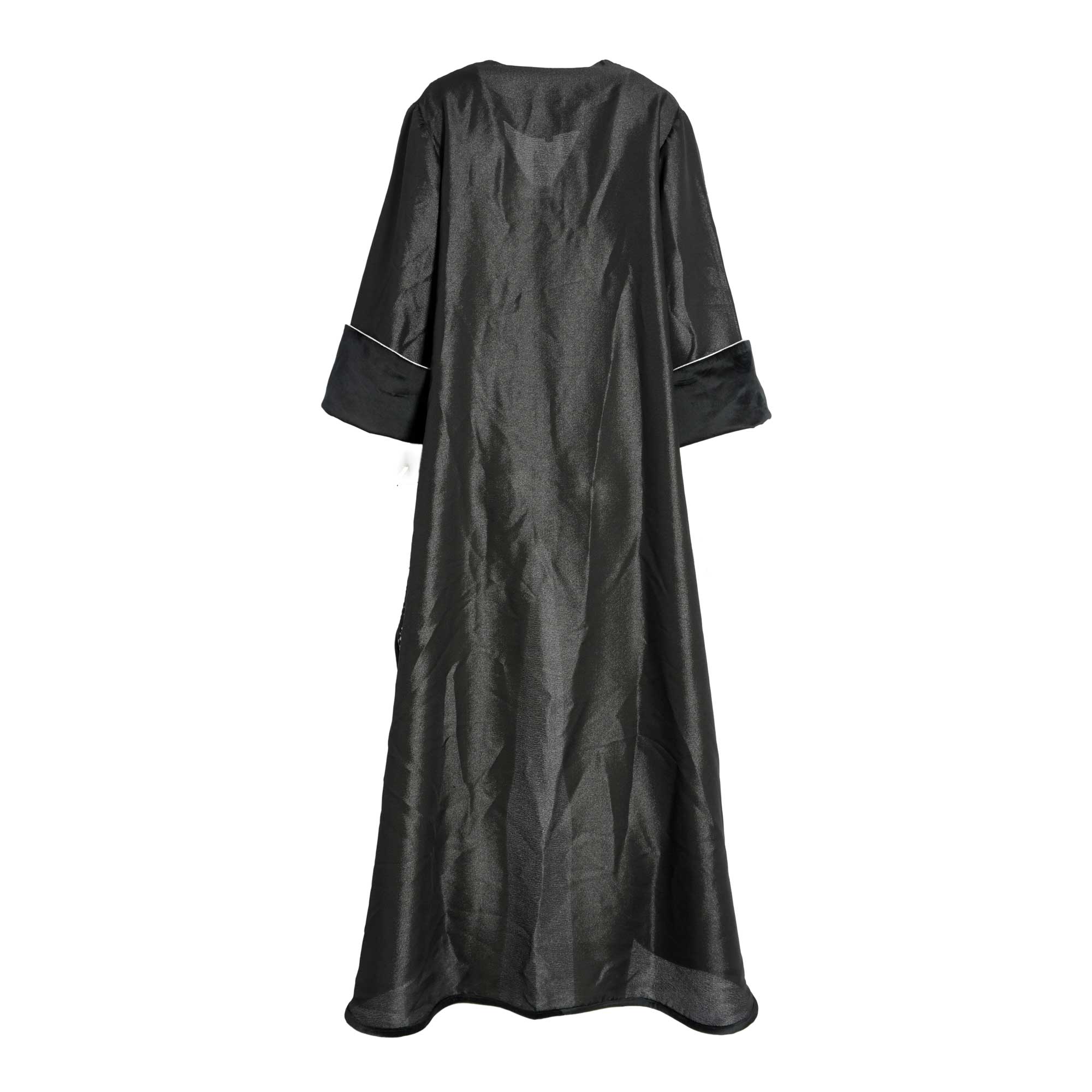 - Long, loose sleeves trimmed with a delicate pipeline for an enhanced look