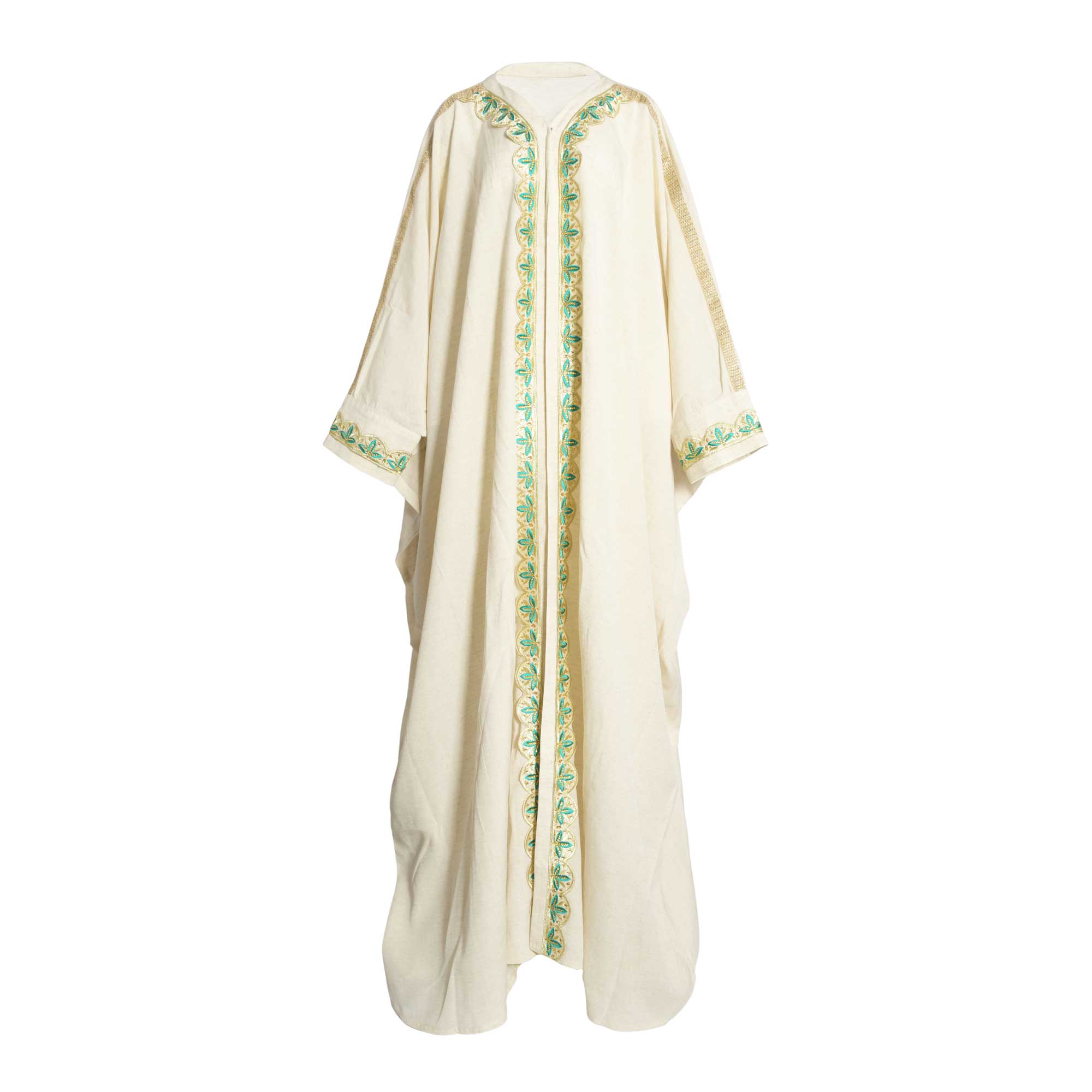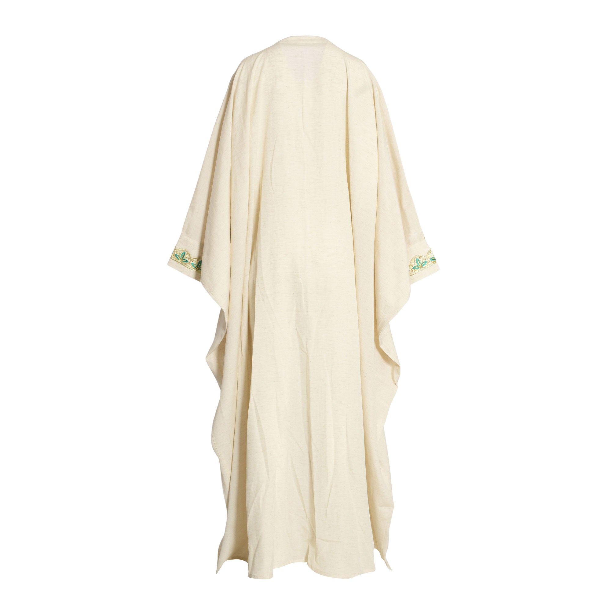 | The Fahm Women's Beige Abaya in kaftan style is a must have for any wardrobe. This Abaya is incredibly versatile and can be dressed up or down to fit the occasion. The fabric is lightweight and breathable, making it perfect for those hot summer days. The beautiful embroidery on the front and sleeves is a unique touch that adds a bit of sparkle to the look. The V neck, loose sleeves, front fastening add to the overall elegance and charm. This Abaya can be dressed up with sparkling accessories and sandals, or dressed down with flats. No matter how you style it, you are sure to look fabulous. SPECIFICATIONS: