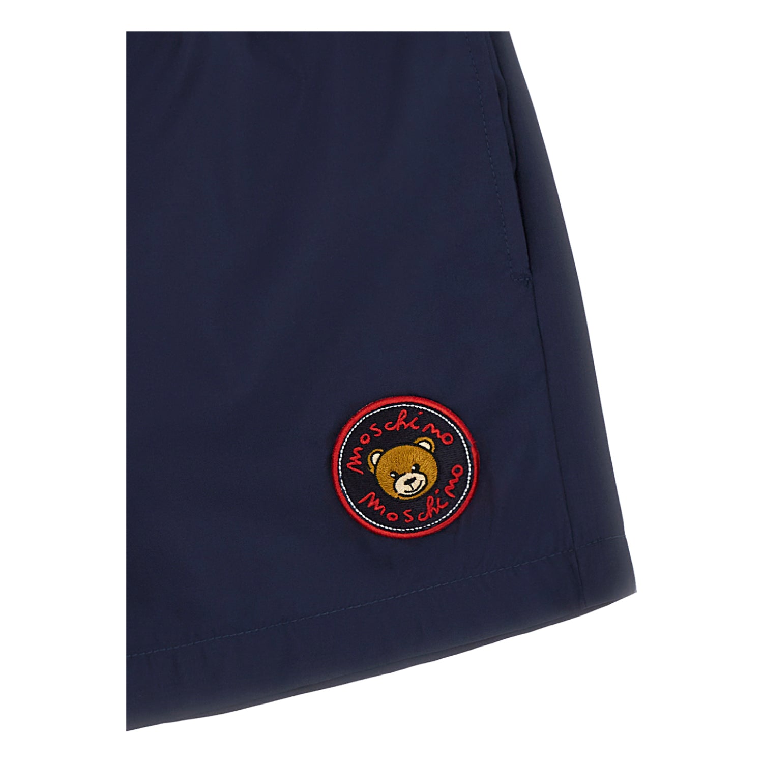 The Moschino Kids Boy's Navy Blue Swimsuit is a stylish and practical choice for young boys. Crafted in a rich navy blue color, it features an elasticated drawstring waistband that ensures a comfortable and adjustable fit. The swimsuit is designed with two side welt pockets, adding both functionality and a sleek look. Its straight hem contributes to a clean and modern silhouette, making it perfect for beach days or poolside fun. Combining comfort and chic design, this swimsuit is a versatile addition to any child's swimwear collection.