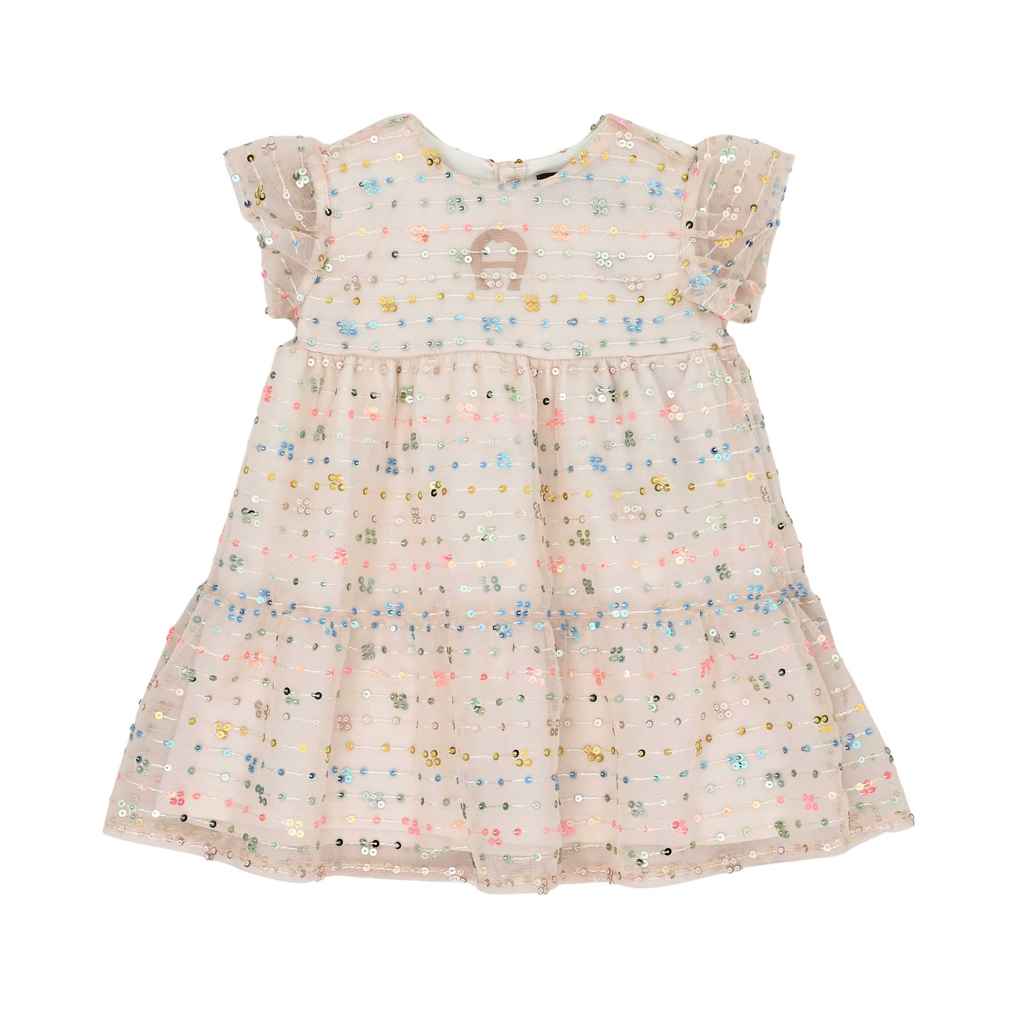 The Aigner Kids Baby Girl's Multicolor Dress is a charming and delightful piece designed to make your little one shine on any special occasion. This playful dress features eye-catching sequin embellishments that add a touch of sparkle and whimsy to its overall look. The cap sleeves provide a sweet and comfortable fit, while the tiered skirt creates a lovely, voluminous silhouette that allows for ease of movement and an extra dose of cuteness. Finished with a classic round neck, this dress offers timeless appeal and everyday comfort. For added convenience, the button fastening at the rear ensures easy dressing and a secure fit. With its vibrant multicolor design and attention to detail, this Aigner Kids dress perfectly blends style and practicality for your baby girl.