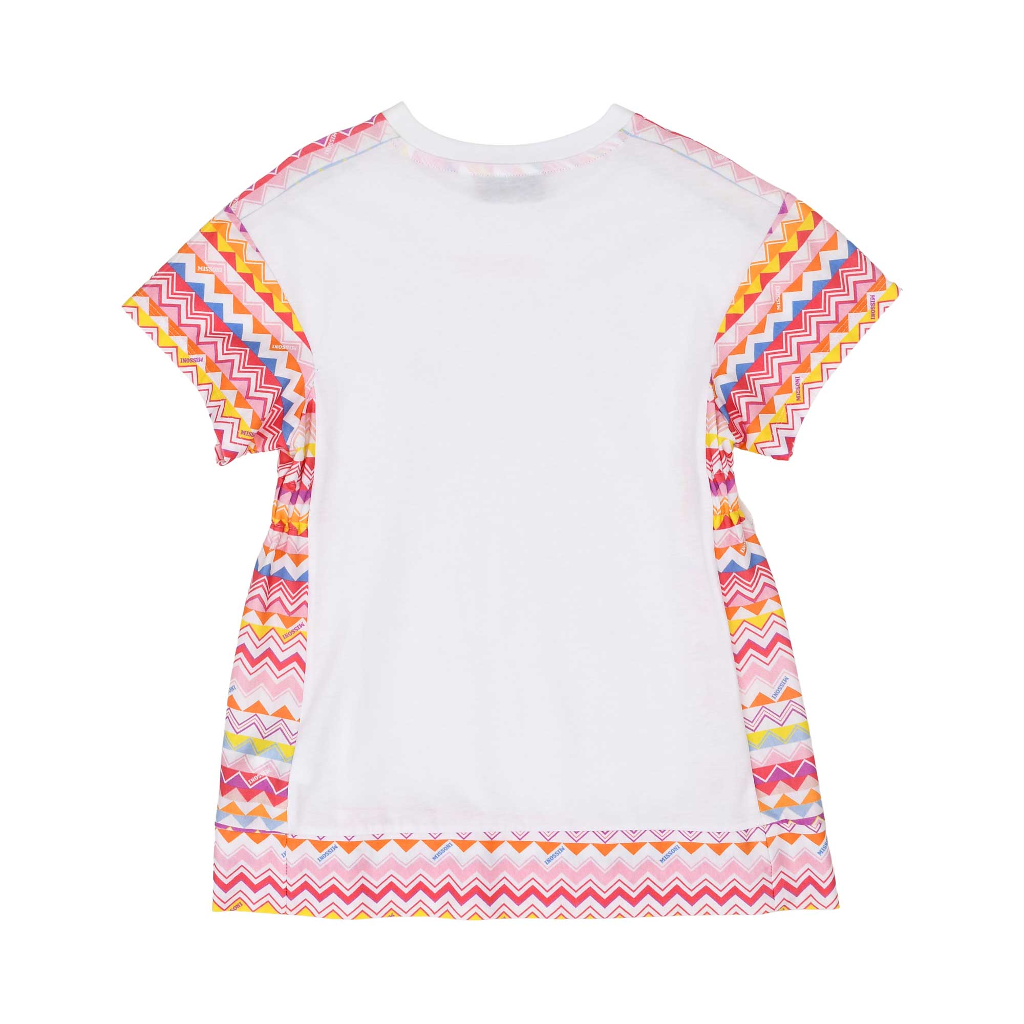 • “MISSONI” printed on the front in a patterned font matching the dress’s playful theme