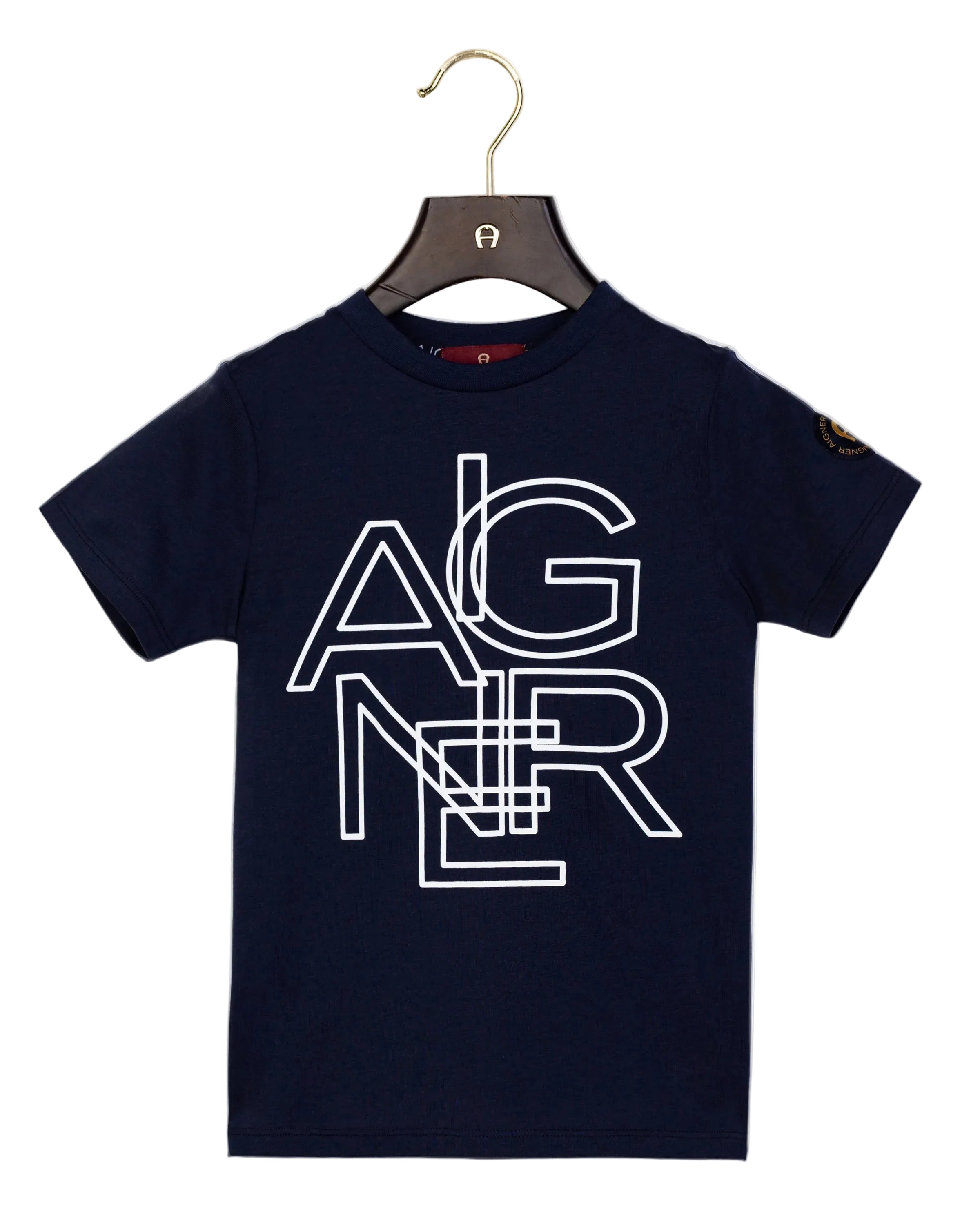 • Signature Branding: Features the shimmery gold or multi-color horseshoe "A" logo prominently on the chest, along with the "AIGNER" wordmark.