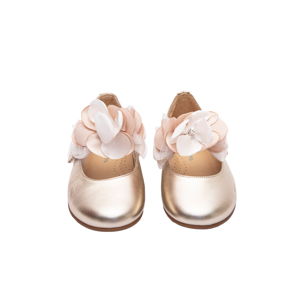 The Andanines Ballerina Gold Color shoes are must-haves for all fashionistas. The gold color brings an extra glimmer of glam to any outfit. The round toe and slip-on design create a perfect fit and an effortless slip-on-and-go look. The flowery strap adds a cute touch to any outfit, perfect as a dress-up shoe for any formal occasion or for a fun top off to any casual daily wear all through spring, summer, autumn, or winter. Comfy cushioned insole and a breathable fabrication provide comfort and freshness throughout the day. These sandals are the perfect way to add some sparkle and style to your girl’s wardrobe! SPECIFICATIONS