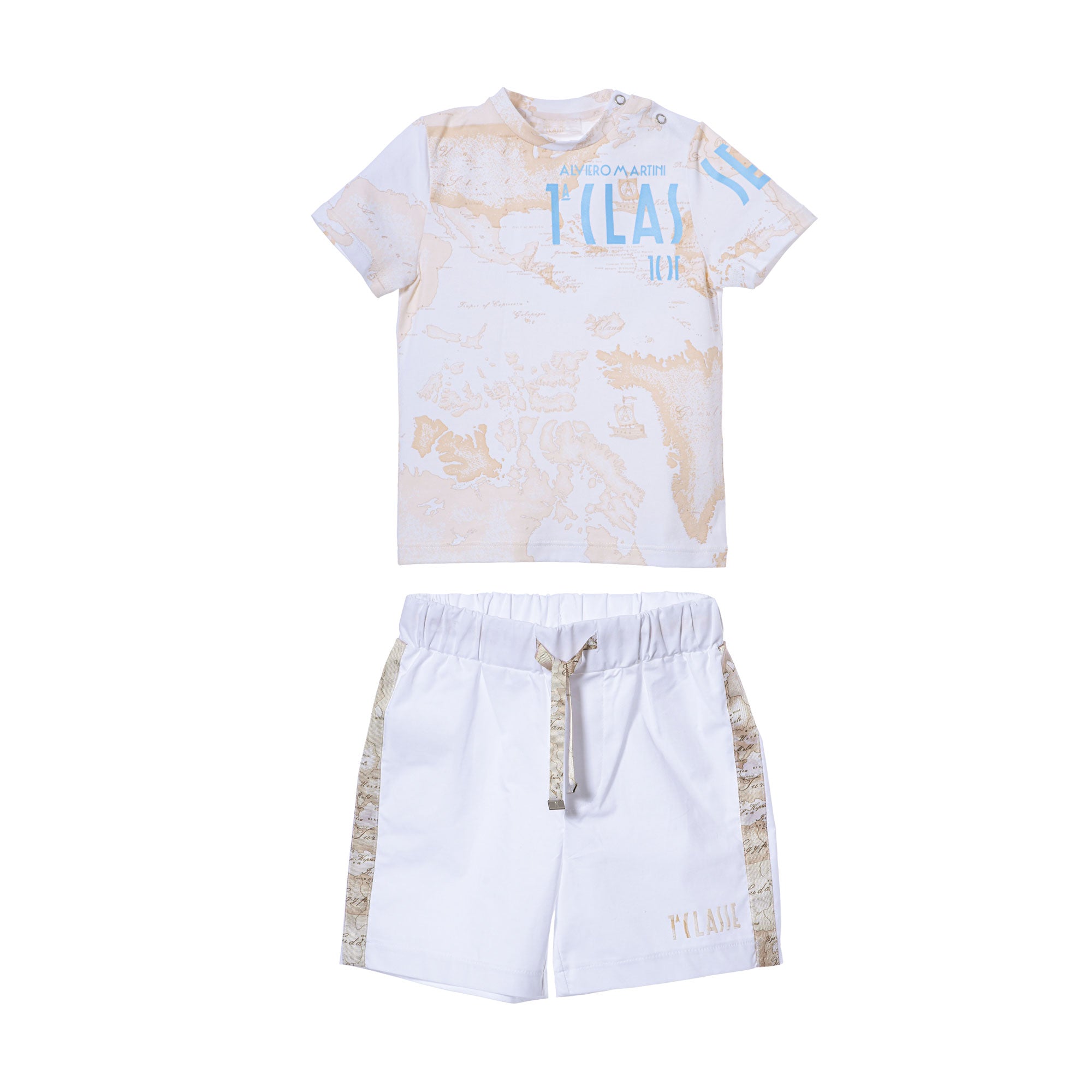 Alviero Martini Kids Boy's White/Geo Beige Set T-Shirt & Bermuda
