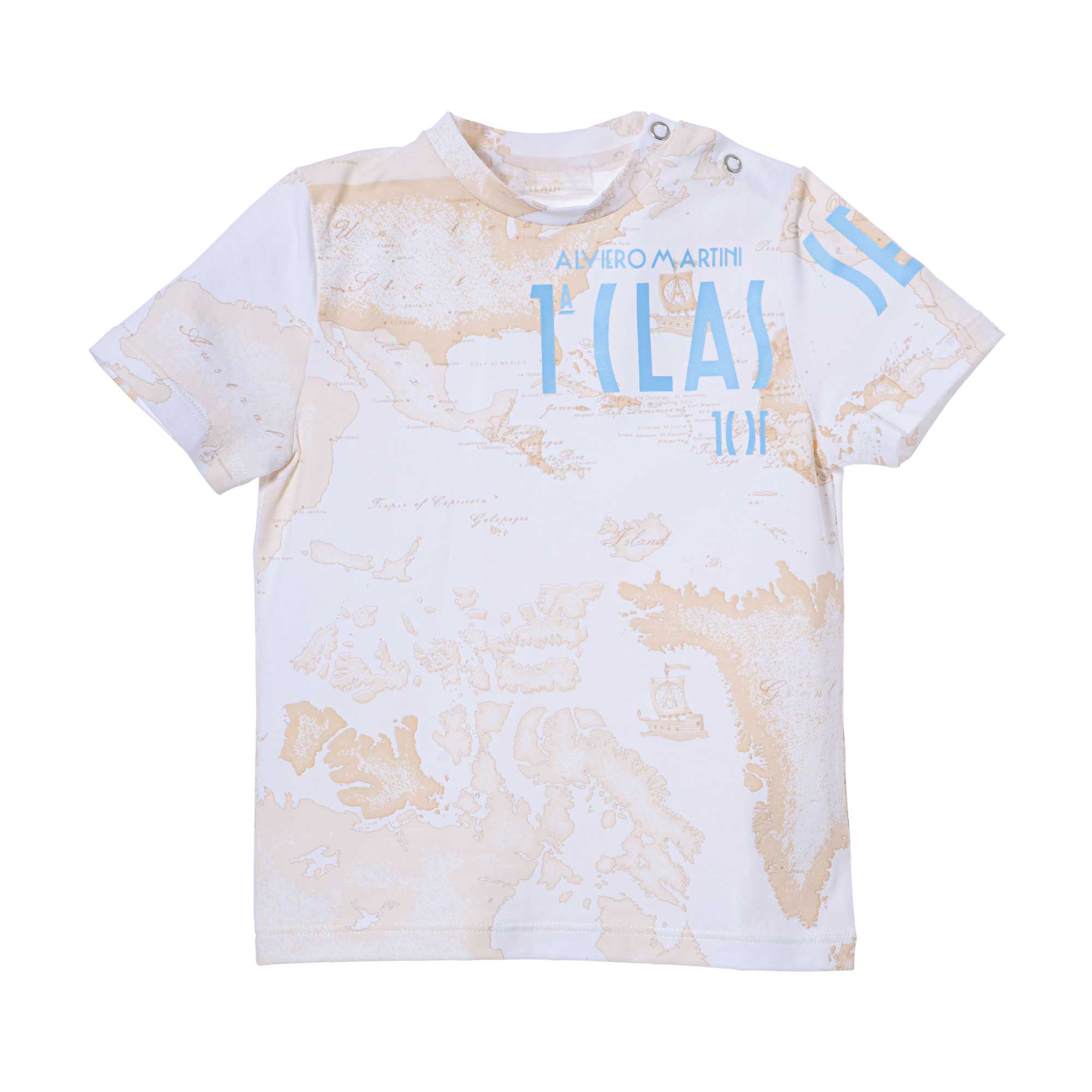 This Alviero Martini Kids Boy's White/Geo Beige Set T-Shirt & Bermuda is a great casual outfit that will make your little one feel cool, comfortable, and stylish. The white and geo beige set features a round neck t-shirt with a classic geo map print, short sleeves, and a straight hem. The t-shirt also features a popper fastening on the shoulder for convenient dressing. The set also comes with a pair of white shorts that have an iconic 1a Classe logo to the front and the traveller's geo map print to the sides. The shorts are finished with an elasticated waist and a drawstring to ensure the perfect fit. This Alviero Martini Boys Set ensures your little one looks chic and has comfortable comfort all day long. Wear it with a pair of sandals for a complete look.
