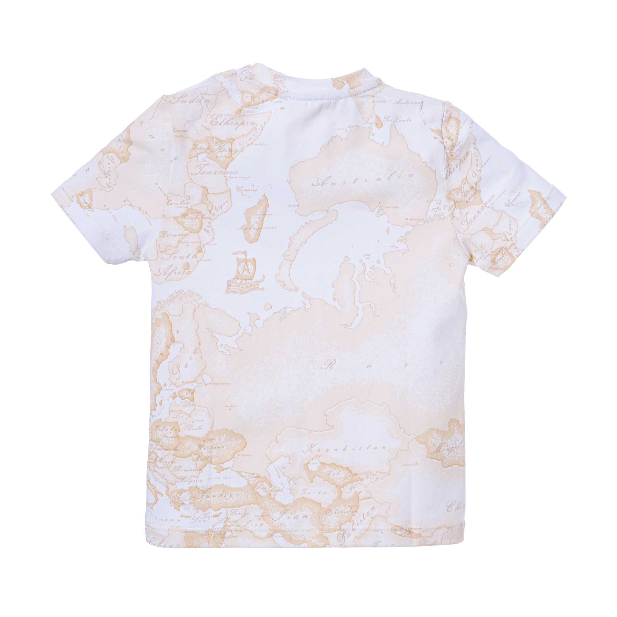 • White and geo beige t-shirt with classic geo map print