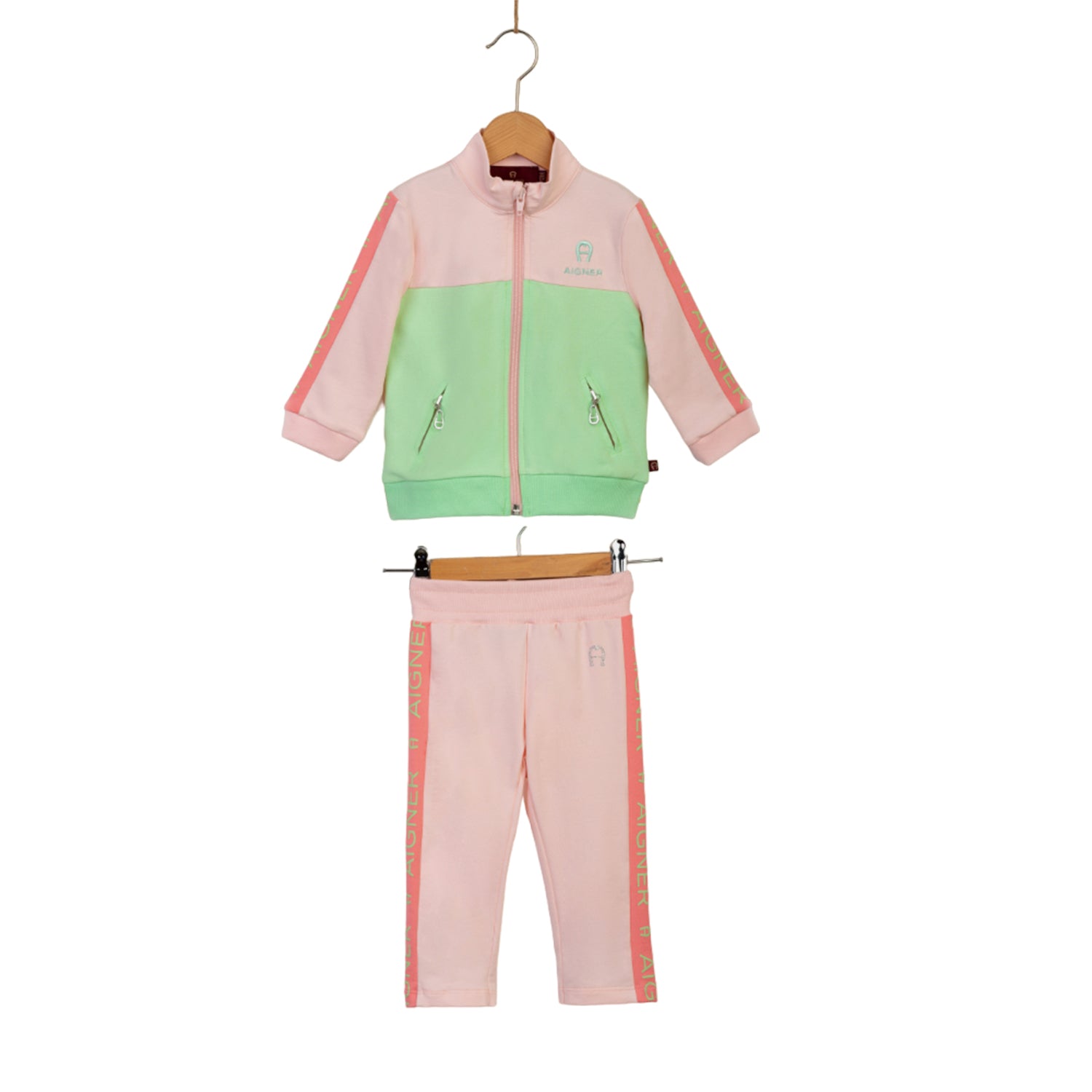The Aigner Logo Tracksuit for Little Girls is perfect for any active girl. Crafted from soft and comfortable cotton, this stylish tracksuit is designed to keep her looking cool and feeling comfortable. The zip-up top features colorblocking and the brand's logo printed in white on the chest. Logo tape on the sleeves and zip pocket on the front add to the look. The top fastens with a zip on the front and is paired with matching joggers. The joggers feature an elasticated waistband for a comfortable fit and the brand's logo in embellished rhinestones and logo tape on the side. The Logo Tracksuit for Little Girls by Aigner is the perfect addition to her wardrobe for any occasion. SPECIFICATIONS: