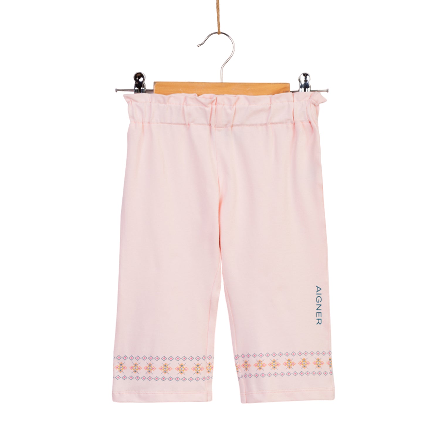 This pretty Aigner t-shirt and trouser set for girls is perfect for any special occasion. Crafted from soft cotton, it features a crossbody bag print with the brand's iconic horseshoe logo, as well as a diamond print pattern around the hem of the trousers. The trousers also feature the brand's logo print on one leg for added style. An elasticated waistband ensures a comfortable fit for all day wear. The set is perfect for any outing and will ensure your little one stands out for all the right reasons. SPECIFICATIONS: