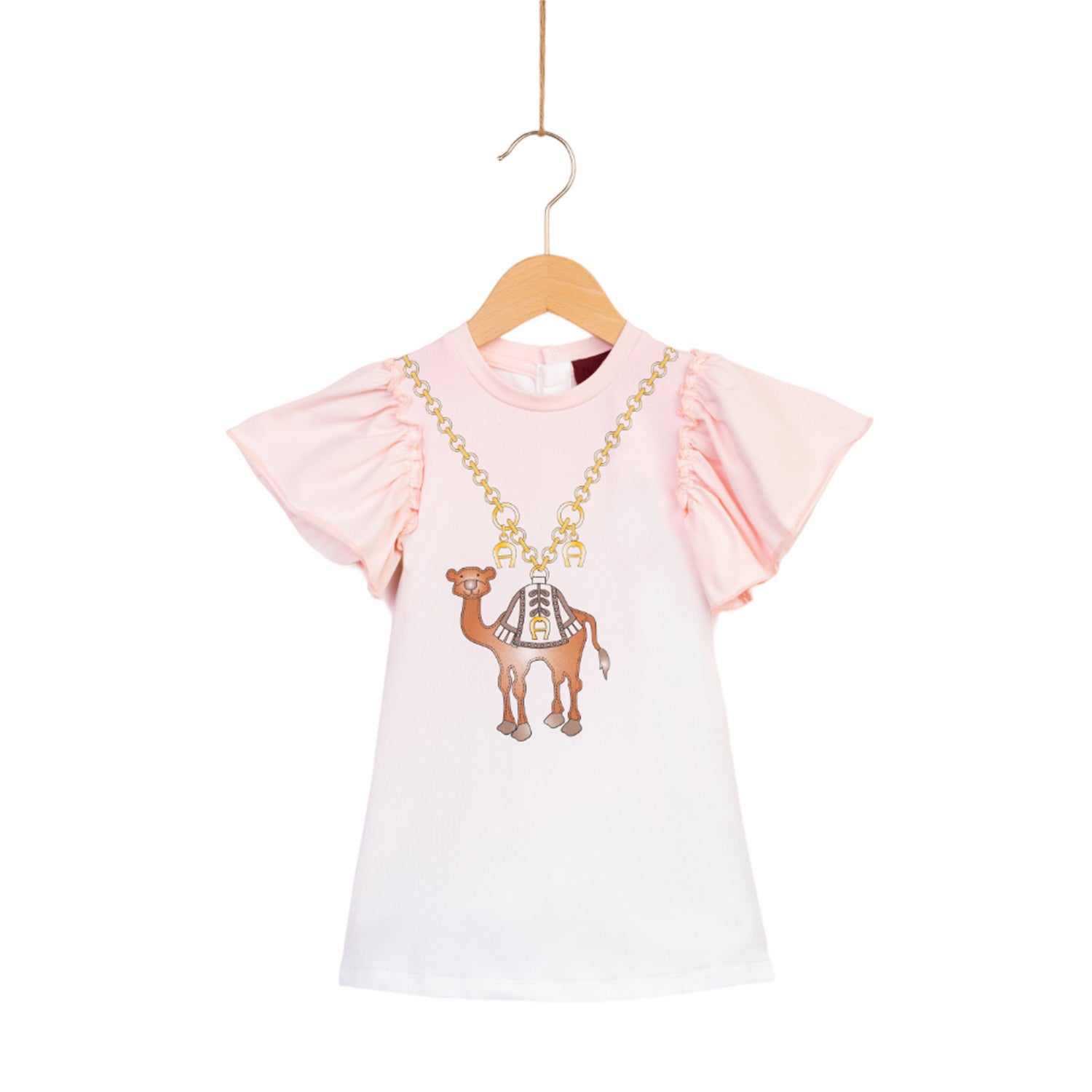 The Aigner Pink and White Dress for younger and baby girls is the perfect choice for a special occasion. This stunning dress is designed by German designer Aigner and is crafted from a soft cotton jersey fabric for superior comfort. The dress features a gold chain, the iconic Aigner horseshoe logo and a camel print on the front. Flutter sleeves with frill trims add a touch of elegance, as does the popper fastening at the back. This dress is sure to make your little one look and feel like a princess. With its classic design and timeless style, this dress is sure to be a wardrobe staple for many years to come. SPECIFICATIONS: