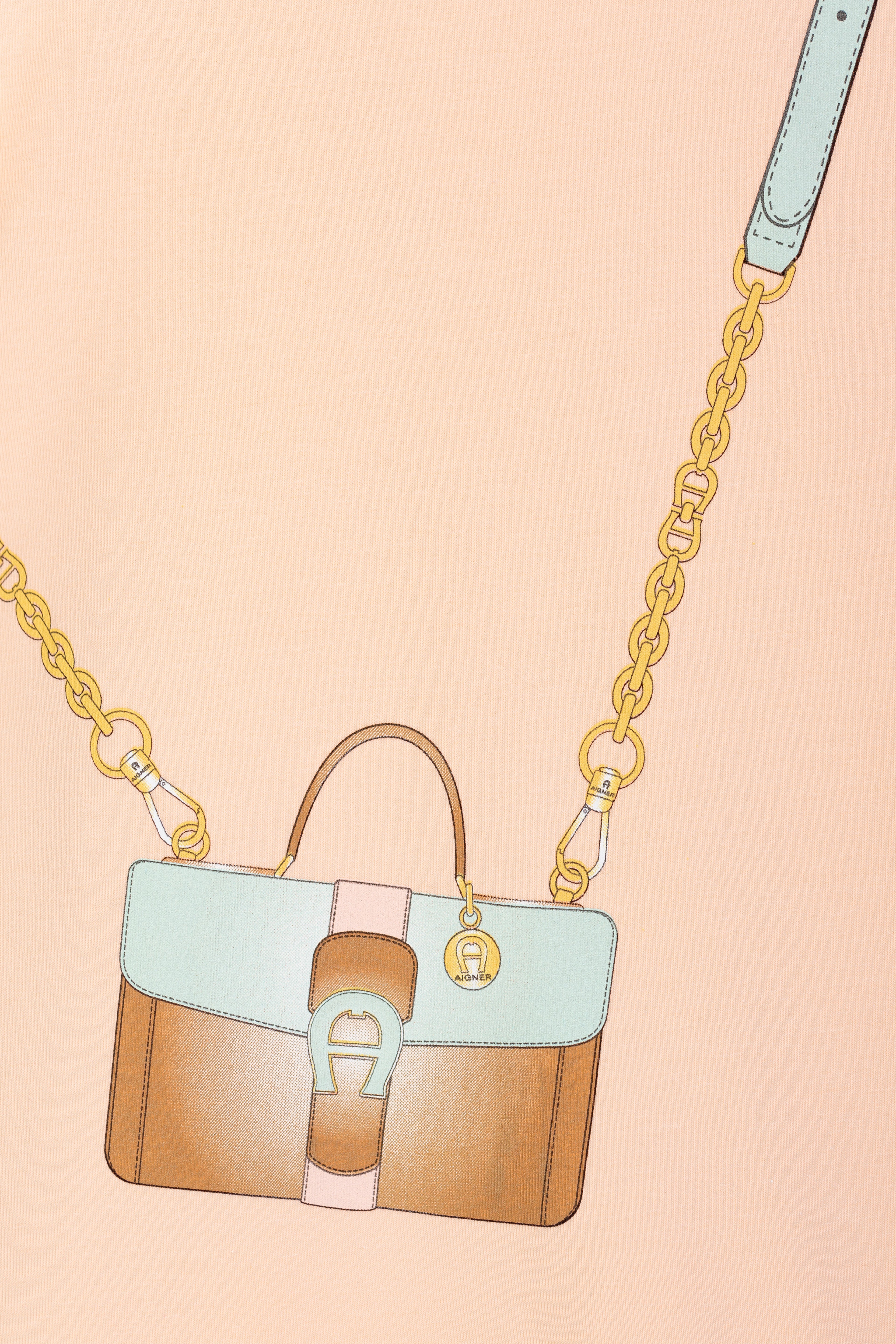 • Features an iconic Aigner purse print with gold-tone details for elegance